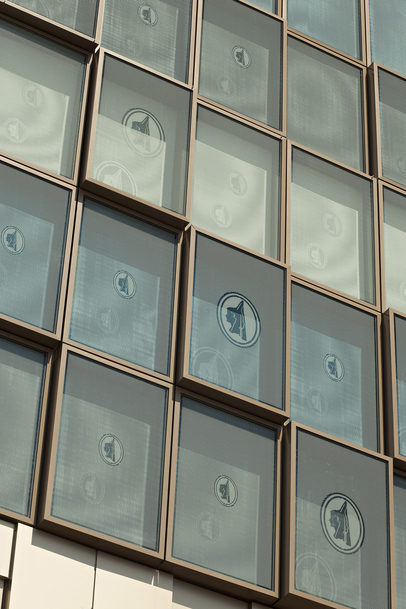 If the building is welcoming inside, outside the facade shines like a diamond: the glass of the most protruding niches reflects more strongly and has a more intense color. The facade is also enriched with a number of panels and they are printed with a pattern