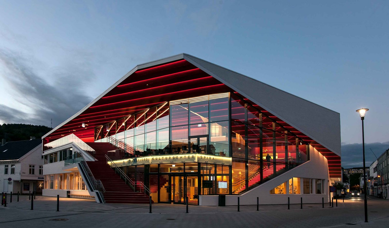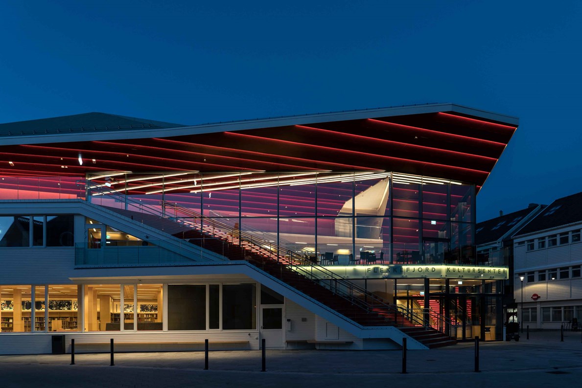 L’edificio si affaccia direttamente sul litorale. Il progetto, realizzato dallo studio di architettura Helen & Hard, occupa un’area di 3.100 m2,distribuiti su tre piani e comprende una biblioteca, un cinema, una sala per concerti e un club per il tempo libero.