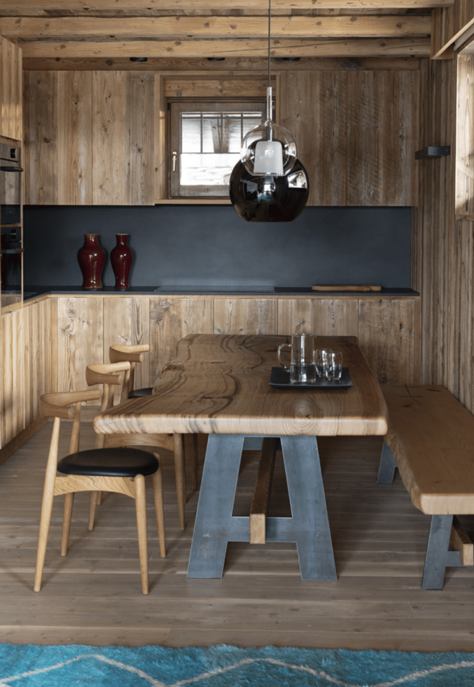The residence, part of a complex of cabins, is spread over two floors. Built at the end of the last century, it had an inconsistent layout and was not closely tied to the alpine aesthetic, sacrificing the potential of its spectacular views of the valley.