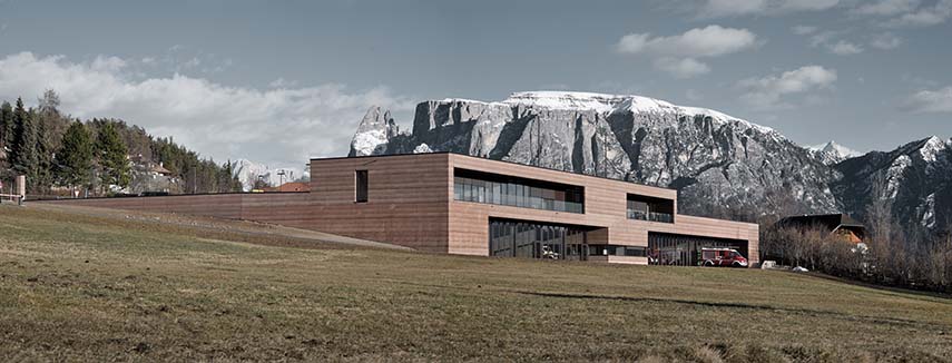 Roland Baldi Architects, known for several architectural projects that have contributed to the revival of Collalbo, also designed the new headquarters for emergency organizations: the Renon Civil Protection Center is a simple yet sculptural building that conveys the concept of "strength through collaboration." It integrates into the natural slope of the site and its two-story volume with contemporary language contrasts with the typical rural architectural style of the area