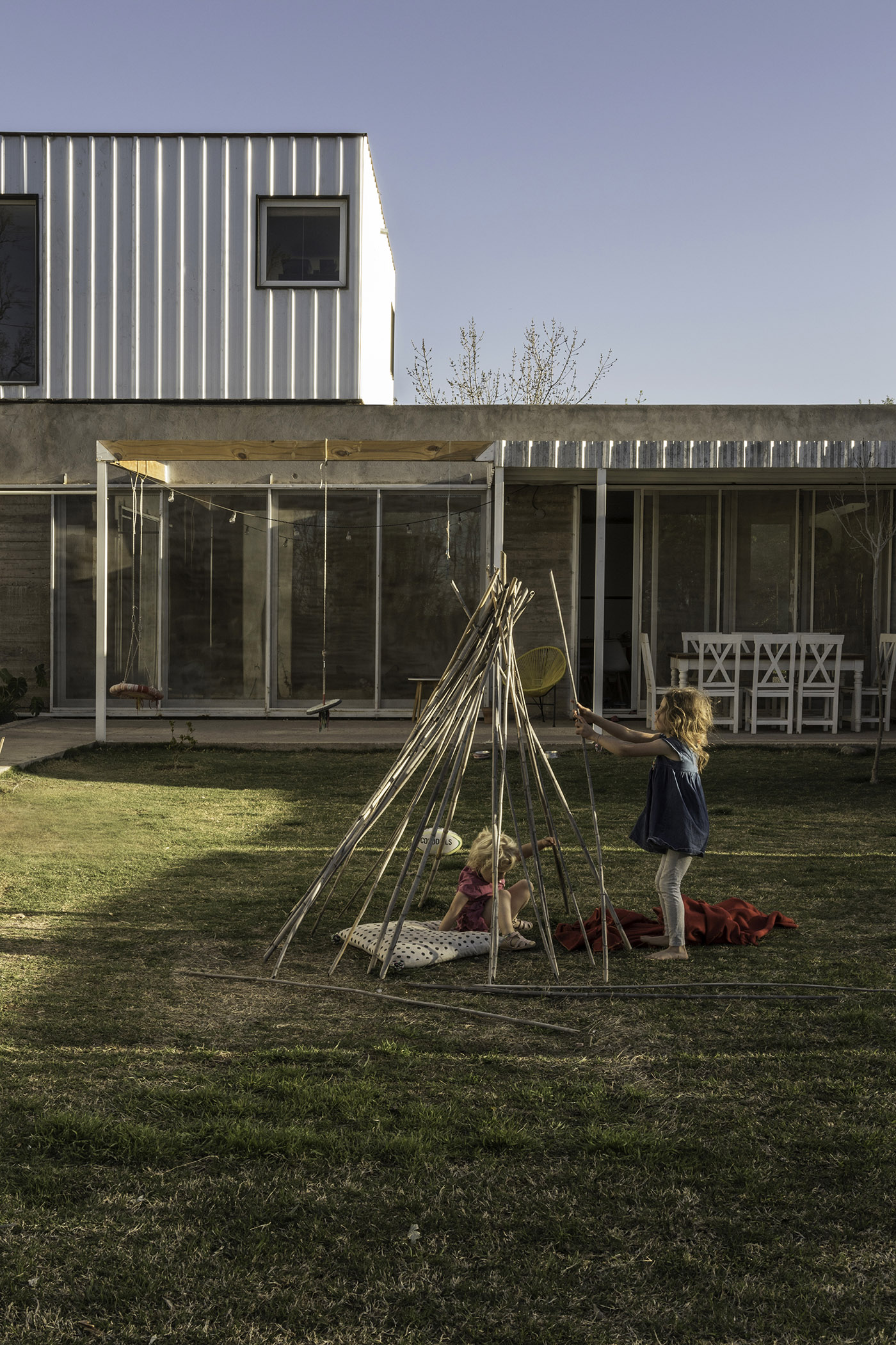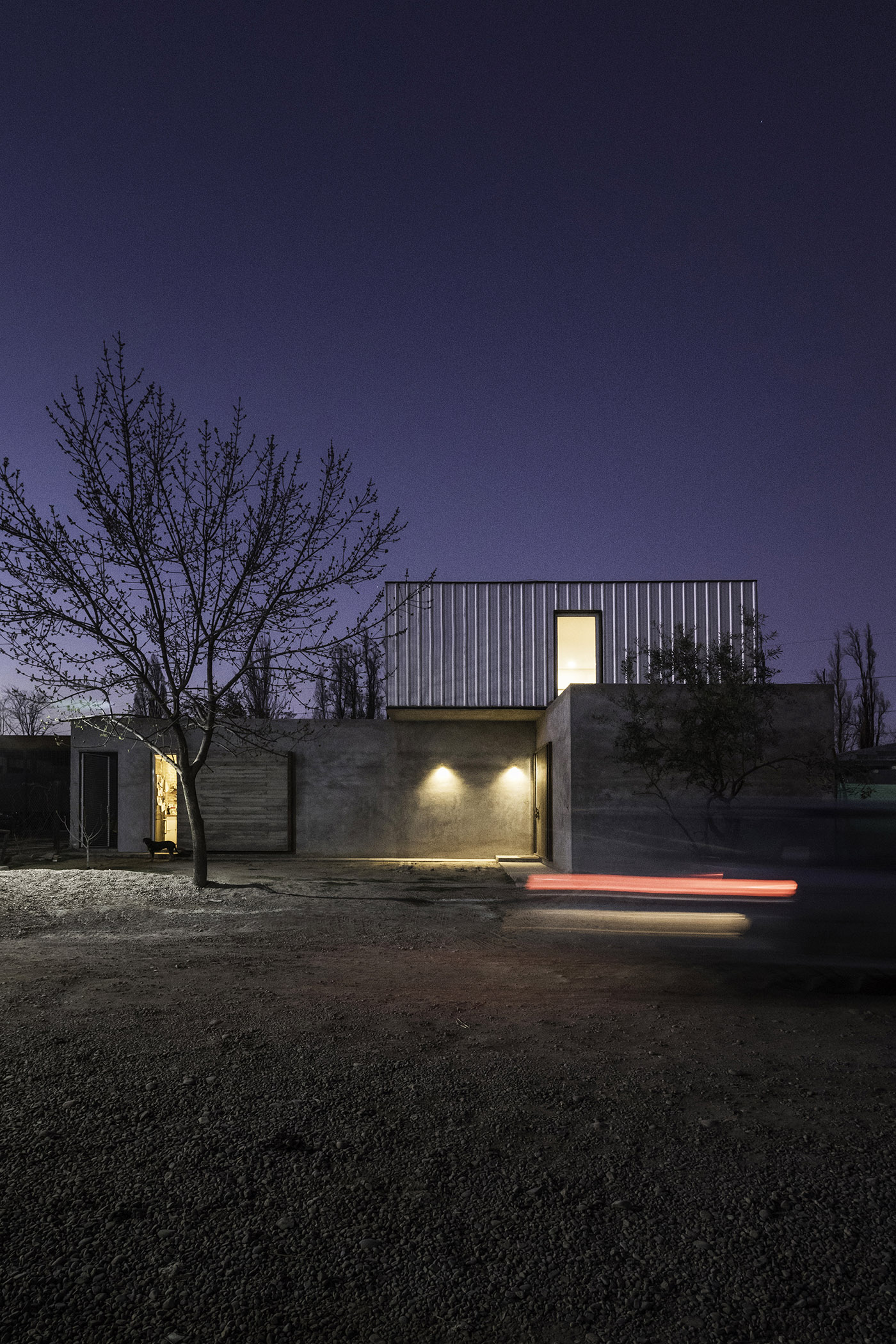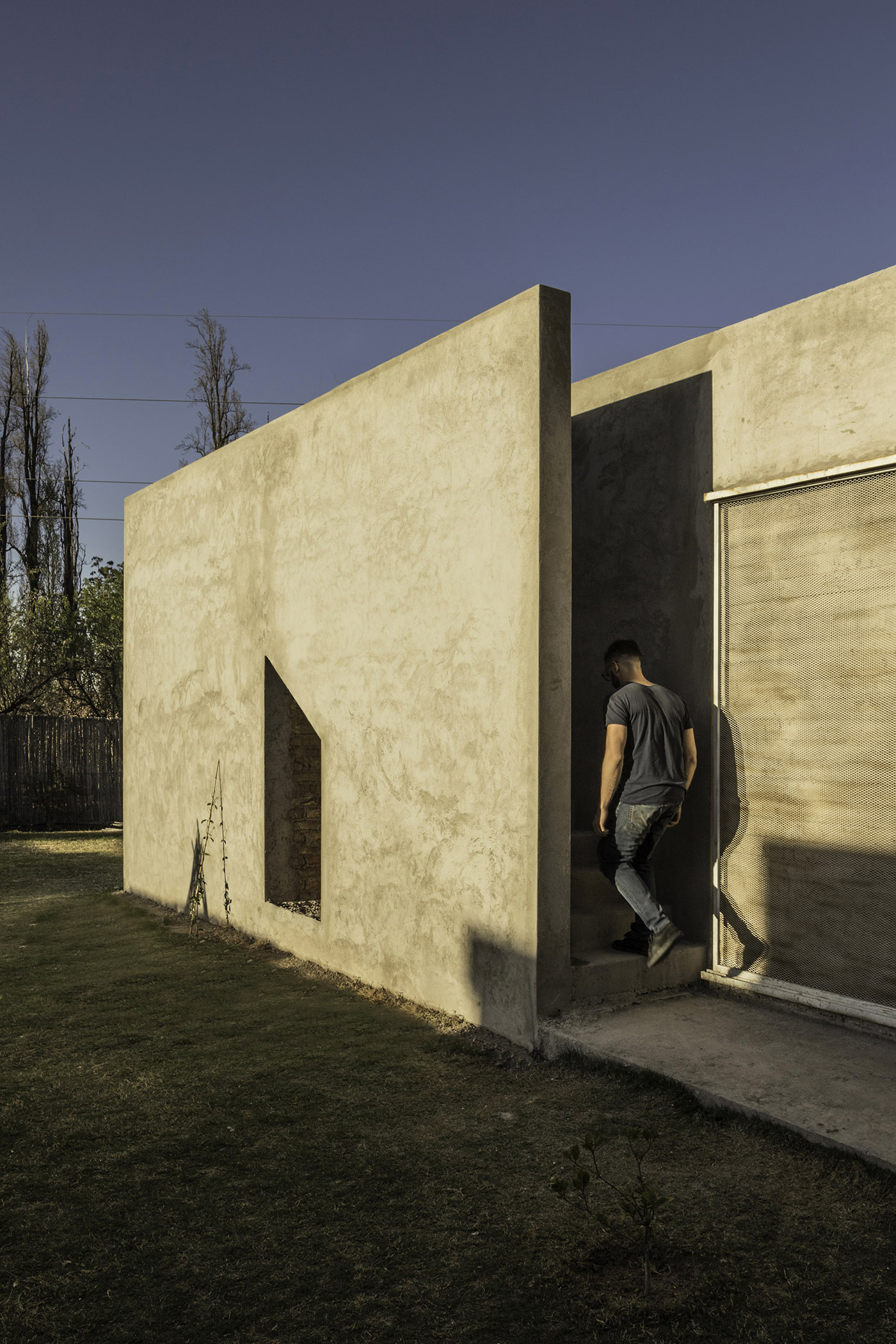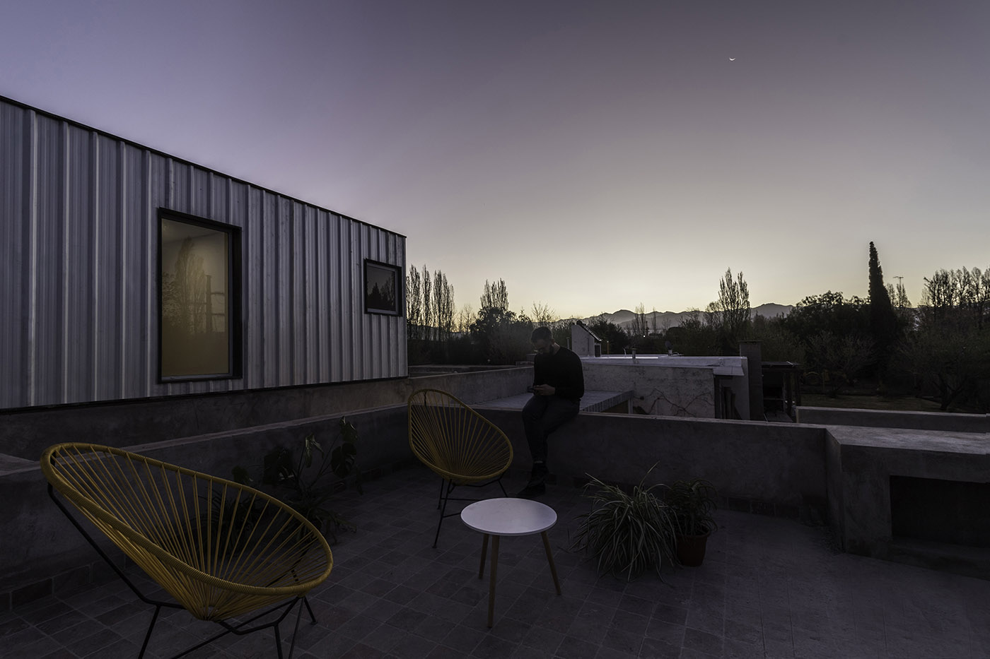 CPJ is located on a 500-square-meter site in Lujan de Cuyo in Mendoza, Argentina, on the outskirts of the city's well-established urban core. The context all around sees single-family houses with plots of vineyards and fruit trees