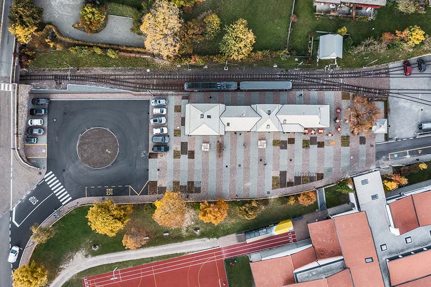 In the immediate vicinity of the train station, the new Intermodal Center has recently been inaugurated, another work of urban architecture by Roland Baldi Architects. This center includes a bus station, a parking lot, and an underground garage, dedicated to both residents and commuters. The station square is the final piece to complete the new mobility plan of the town.