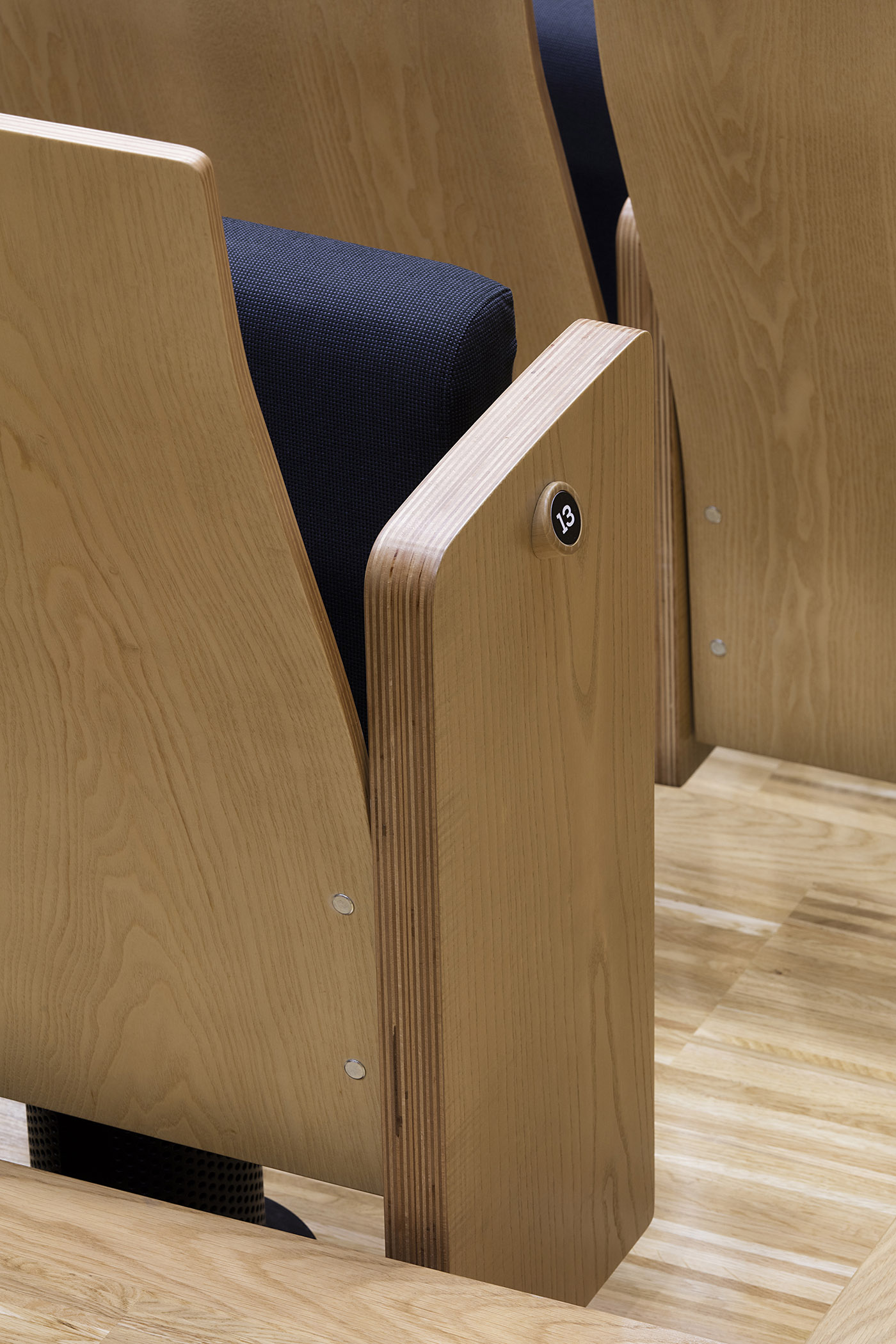 The space is suitable for holding small-scale chamber music concerts. The high ceiling required for this type of concert was created by modifying the former gymnasium. The optimal reverberation time of the space is mainly determined by the volume, shape and proportions of the hall. In addition, a decisive element for the excellent sound of the hall is the high diffusivity of the space, which is provided by the uniquely designed ash wood panelling. The constant supply of sound energy is also supported by a wrapped beech ceiling, the wooden slat design covering the walls, by the optimisation of the reflective, diffusing and sound-absorbing surfaces, and by the carefully designed seating