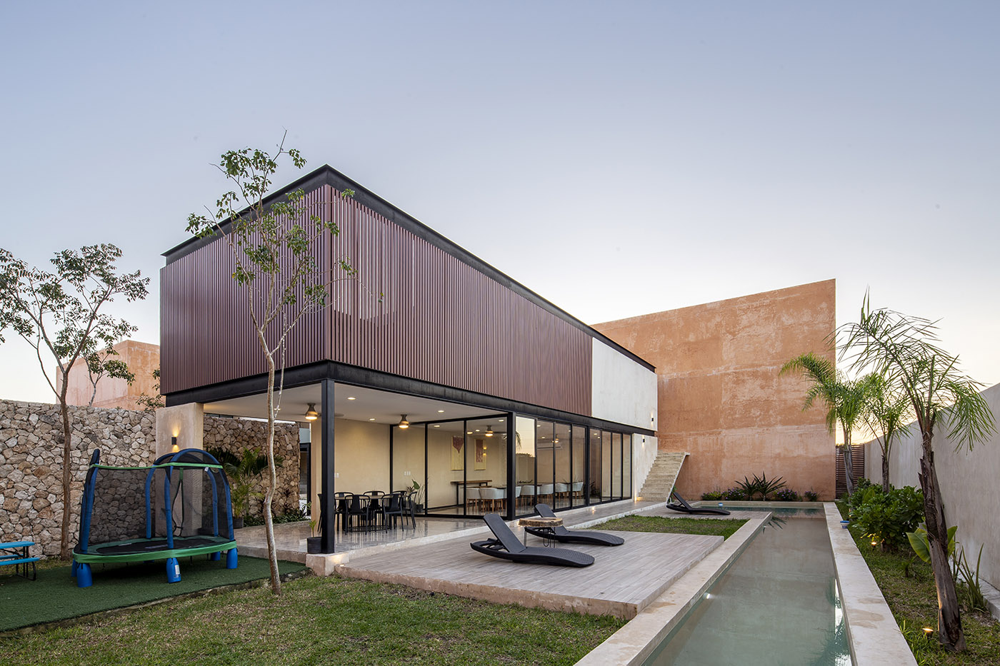 The multi-family complex accommodates 54 families in the city of Mérida, in the Mexican state of Yucatán, and is based on the idea of fragmenting a large volume into four smaller parts in which the entire housing programme is developed