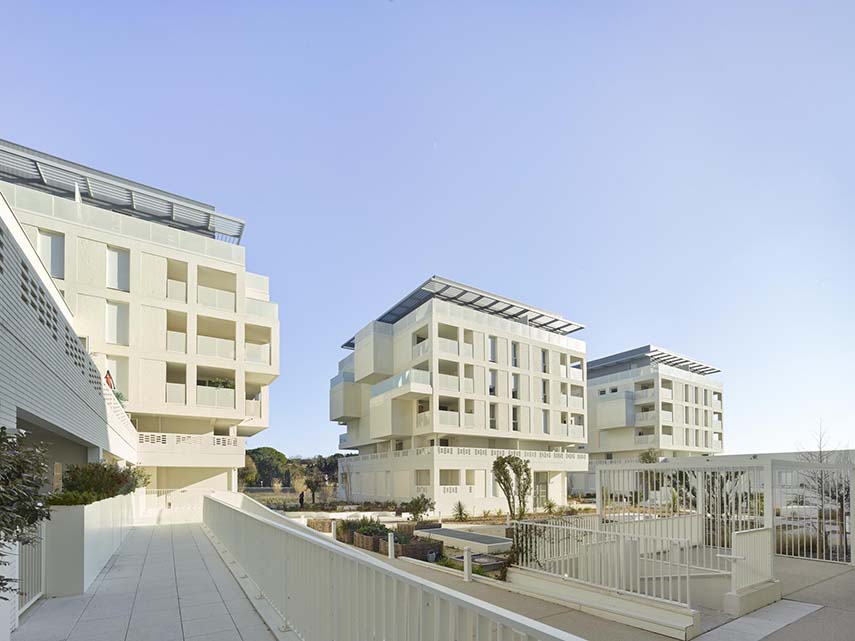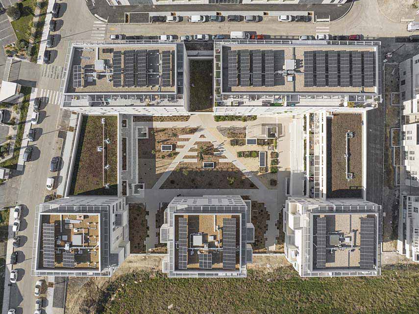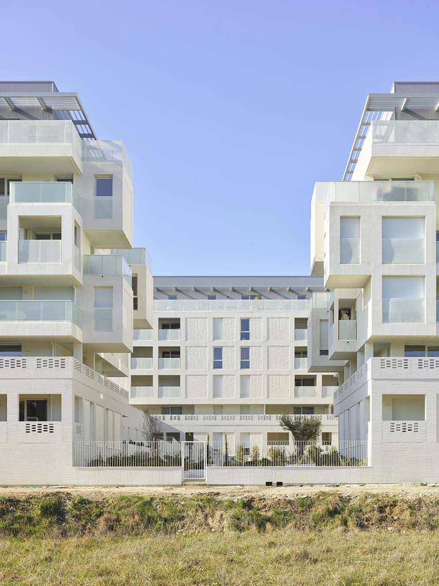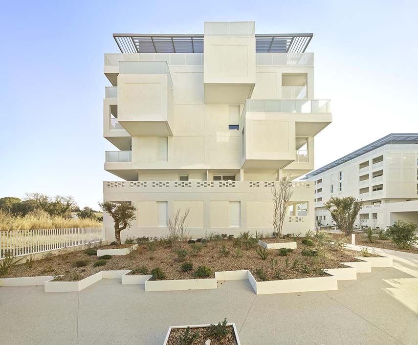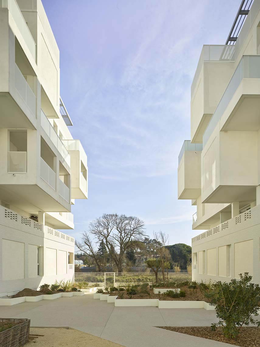 The TAA studio designs the Cosmopoly residential block while maintaining the focus of the Lironde redevelopment plan, which aims to recreate ecological corridors for the free movement of species and strengthen the ecosystem's resilience affected by habitat fragmentation due to climate change. The lot 20, where Cosmopoly is located, is in a crucial point between natural areas and urban development: in the project, the courtyard is created with the perspective of landscape continuity between the park and the new neighborhood, featuring vegetable garden lines, vines, and a small orchard