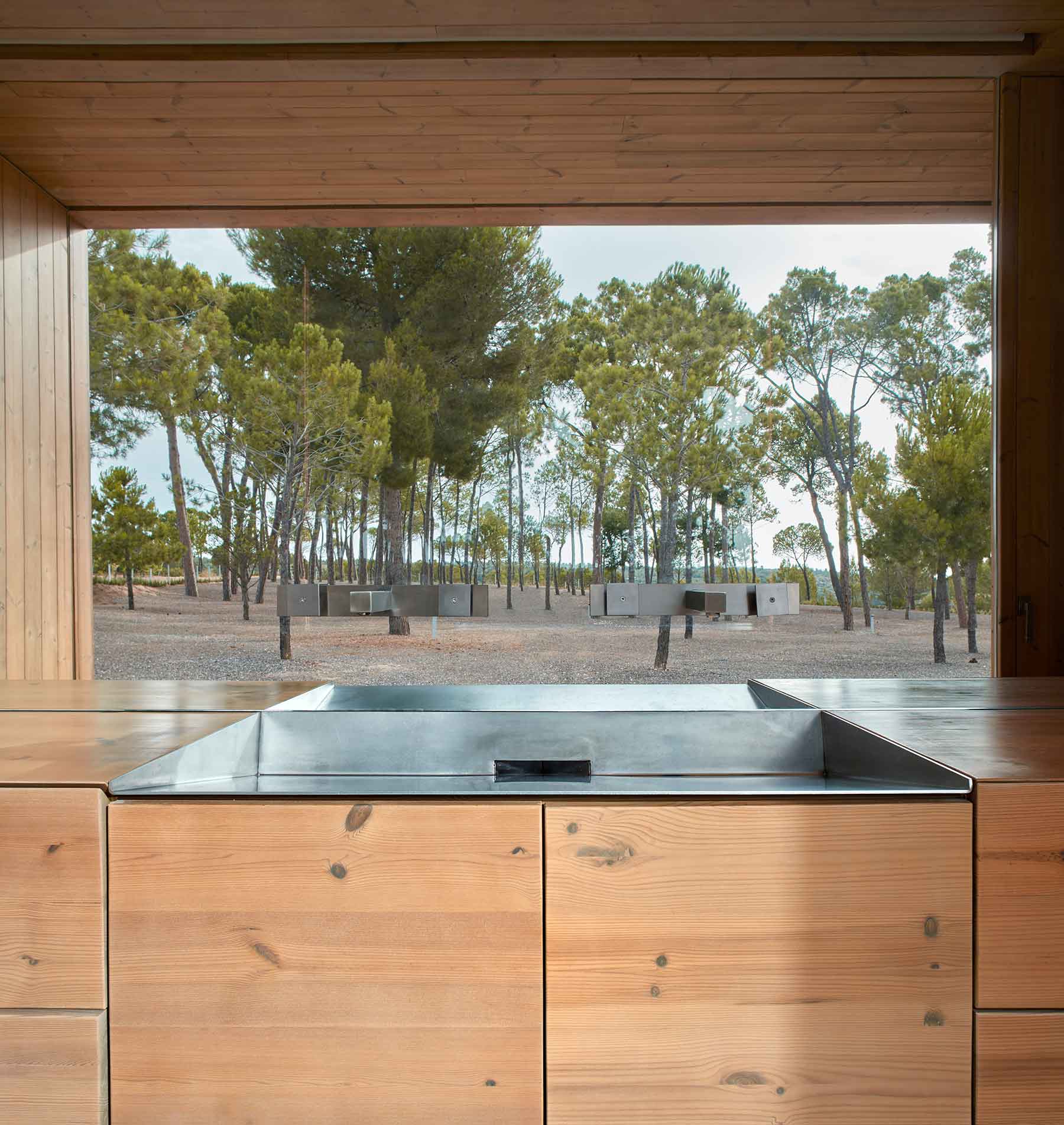 The views from the inside are framed by pine wood surfaces