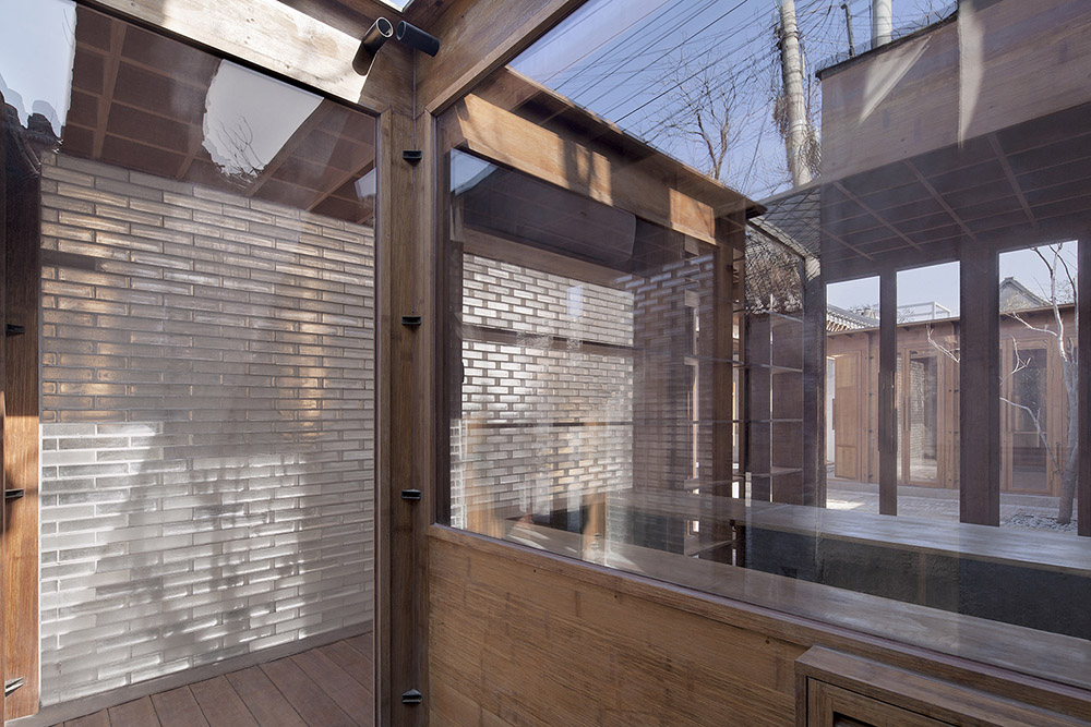 The original low-quality additions are replaced, making way for laminated bamboo and wood framing. The overall layout includes one large and two small courtyards, elucidating the connection between multiple functions