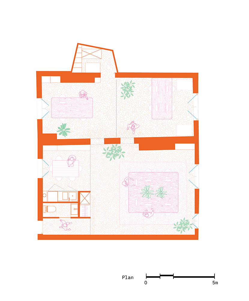 The room was previously divided into two spaces and had been abandoned for several years. During the project an attempt was made to recreate within the spaces a certain nobility while giving the materials their initial essence, such as the inclusion of the stone wall