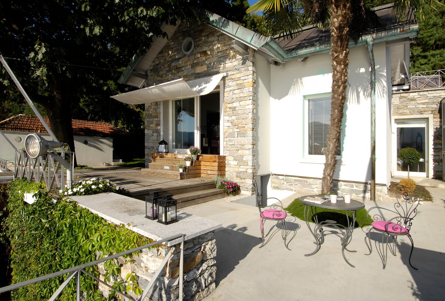 In 2005, the dock was purchased by two young entrepreneurs in the construction industry, who loved the lake and the surrounding environment. The dock is located at a lower altitude than the road and is protected from traffic. A stone staircase leads to the dock, where you can admire a fantastic view from the small garden and the splendid wooden pier