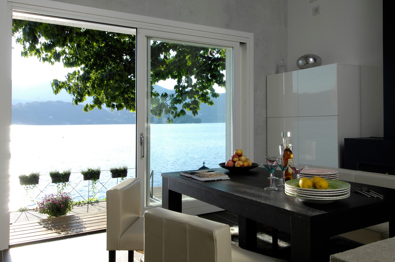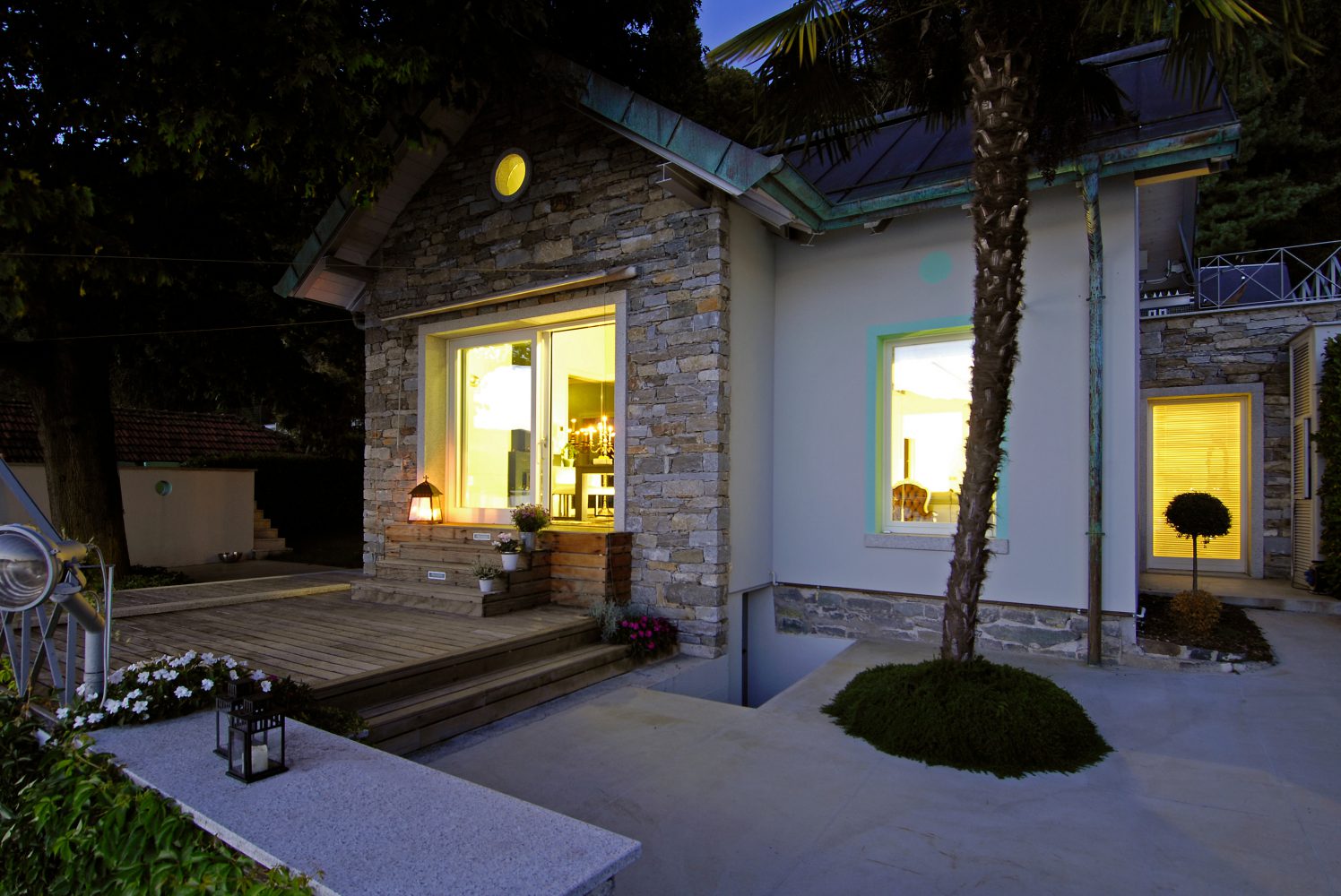 The small outdoor garden with a century-old oak and a palm tree has some areas that have been covered with lawns and others that have been paved with wooden strips and other resin areas. The garden, the pier, the new layout of the building create an idyllic environment, a safe place to take shelter and relax while admiring the view and the magnificent sunsets over the lake