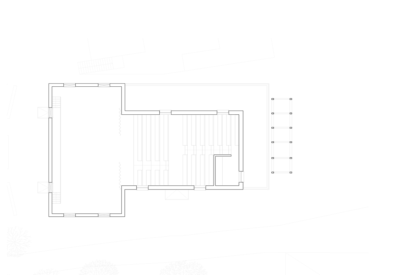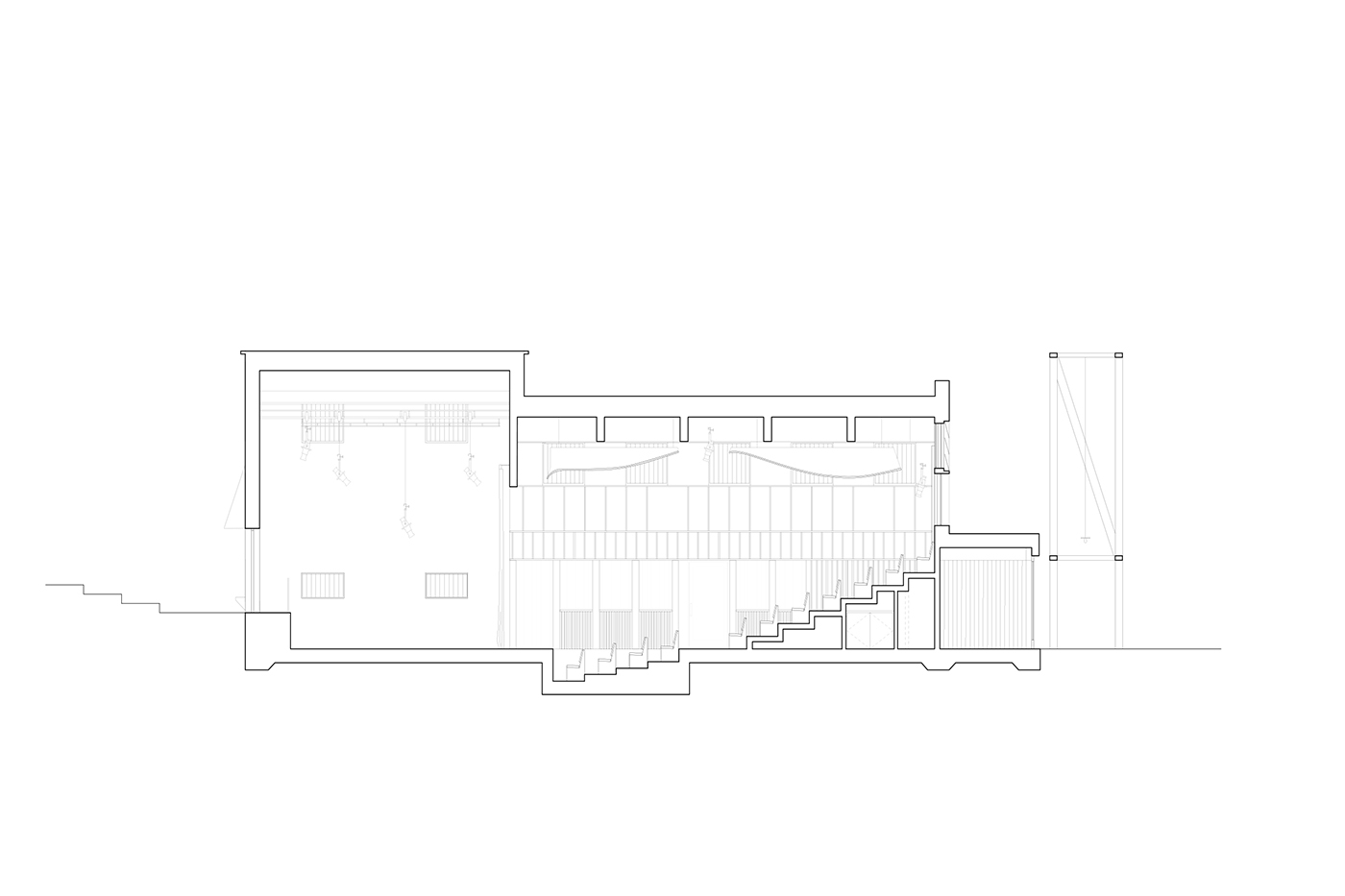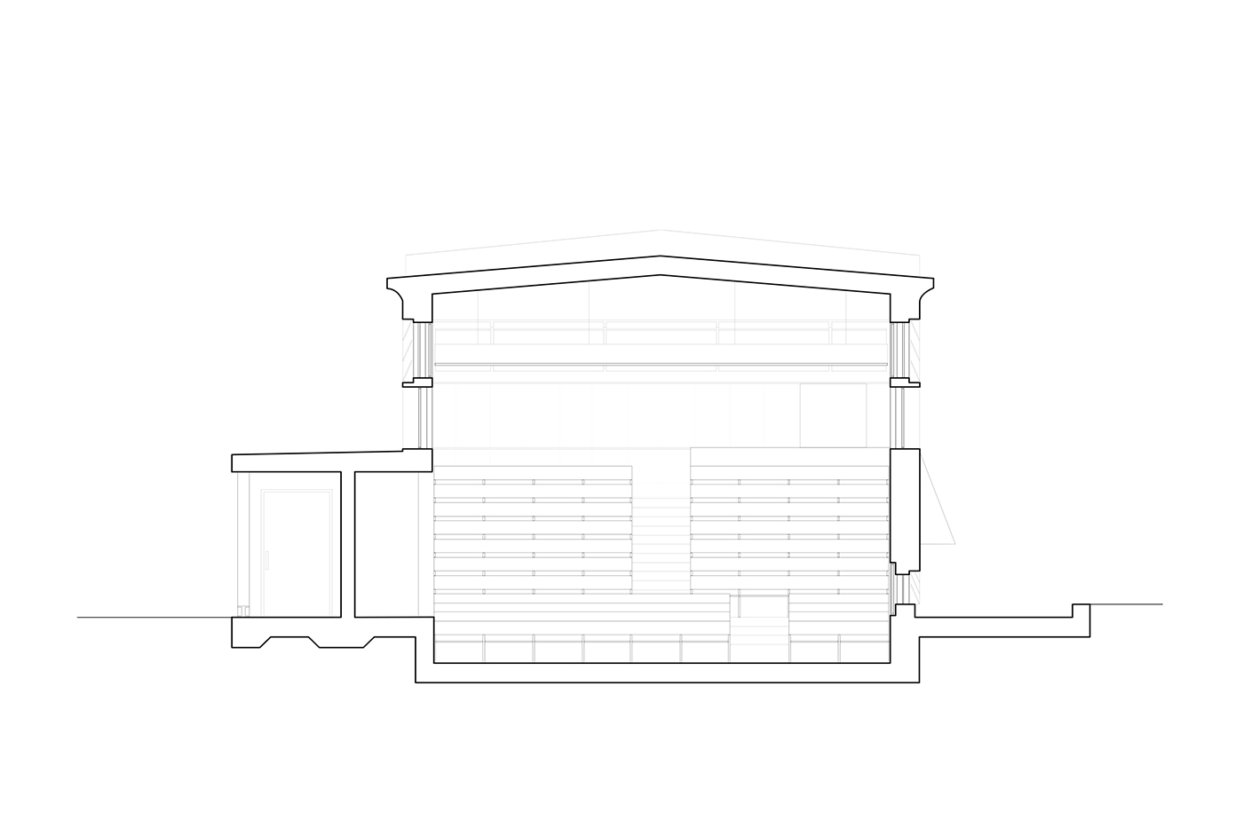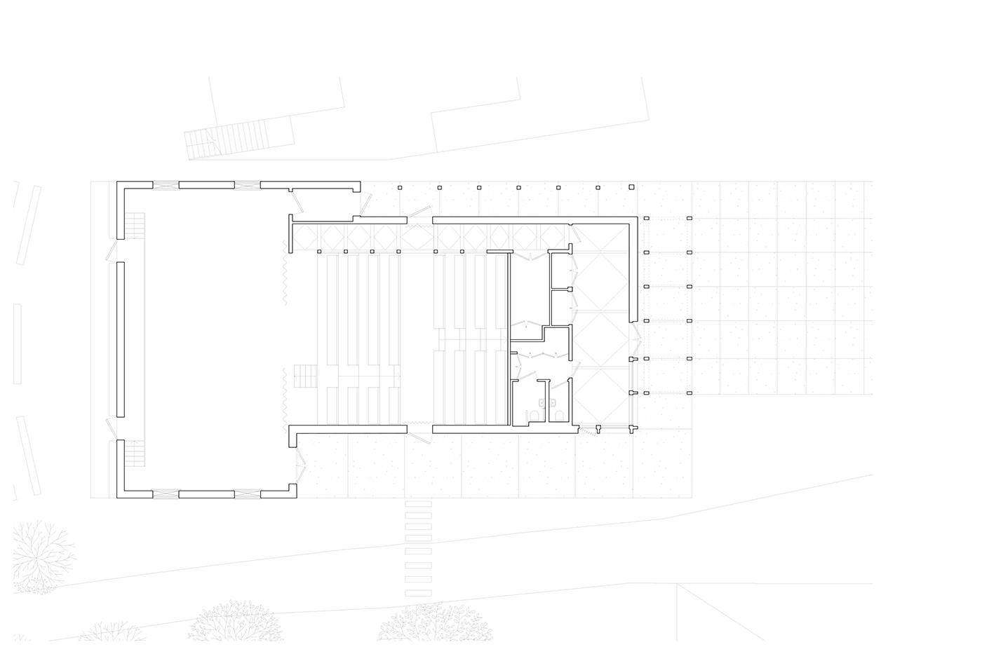 Designed to host school assemblies, musicals and theater productions, the space was divided into three parts. A civic plaza in front of the entrance porch, the auditorium proper, and finally an open-air amphitheater in the back. The permeability of movement between indoor and outdoor spaces creates an inclusive and social building that encourages pupils to collaborate and play