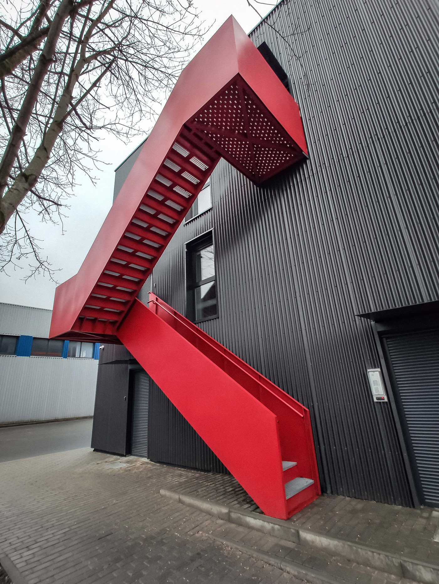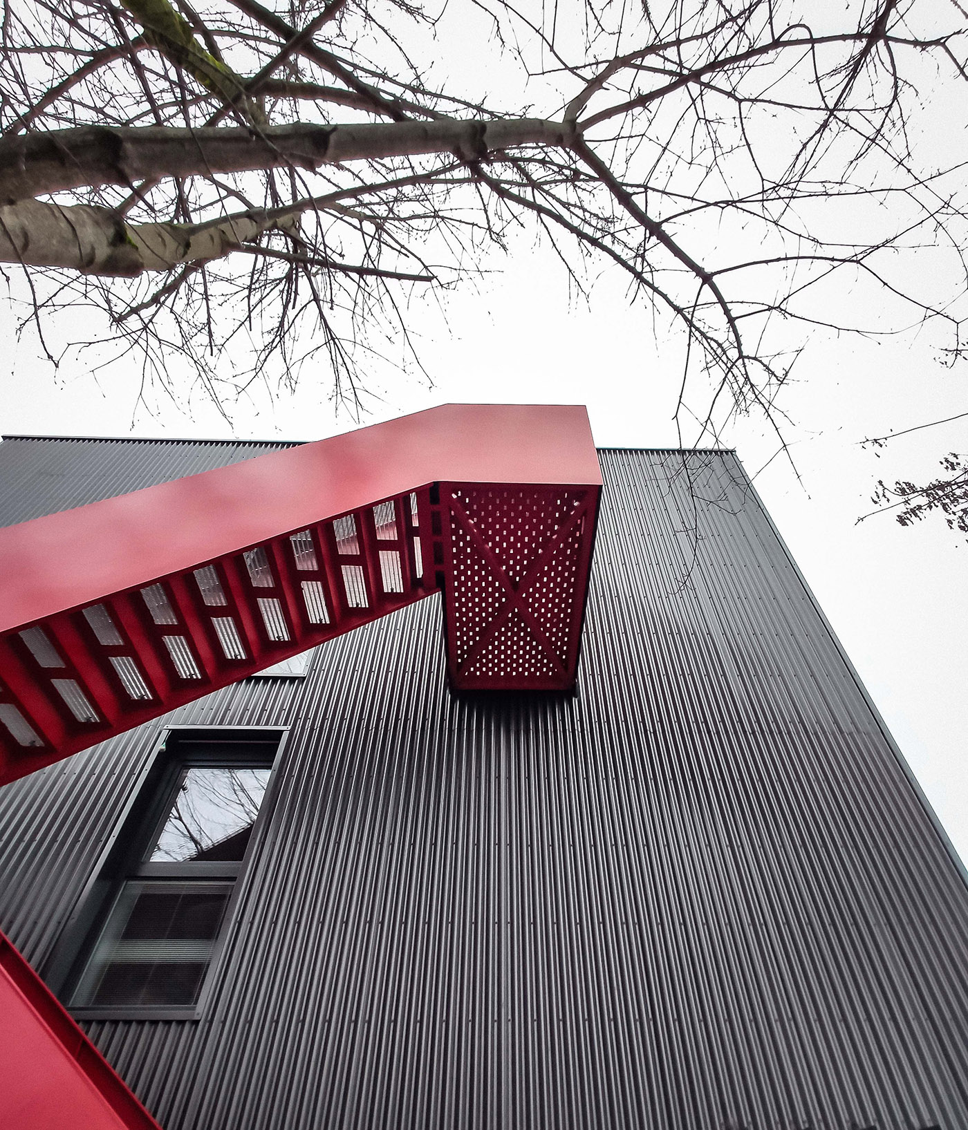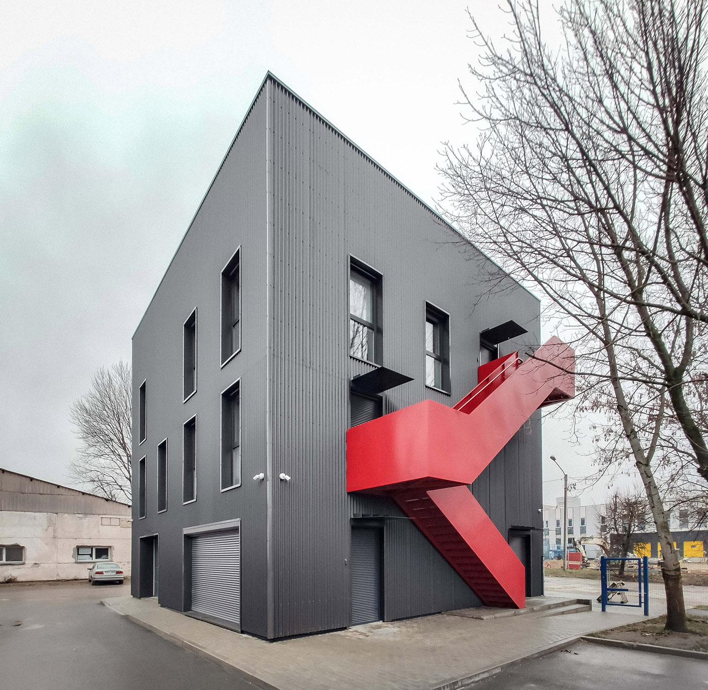 The Central Office stands on Metalo street in Kirtimai, an urban municipality in Vilnius, Lithuania. Its new appearance celebrates the name of the street to which it belongs and the functionality of the building, which in an almost ascetic manner rejects decoration for its own sake