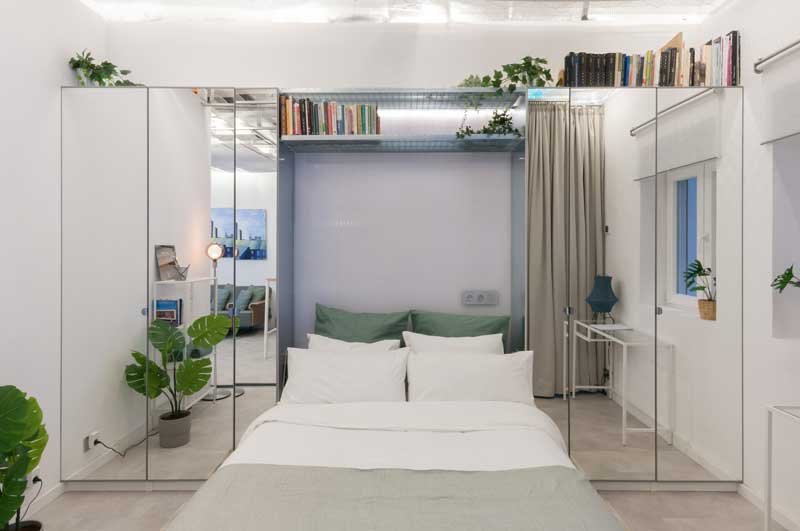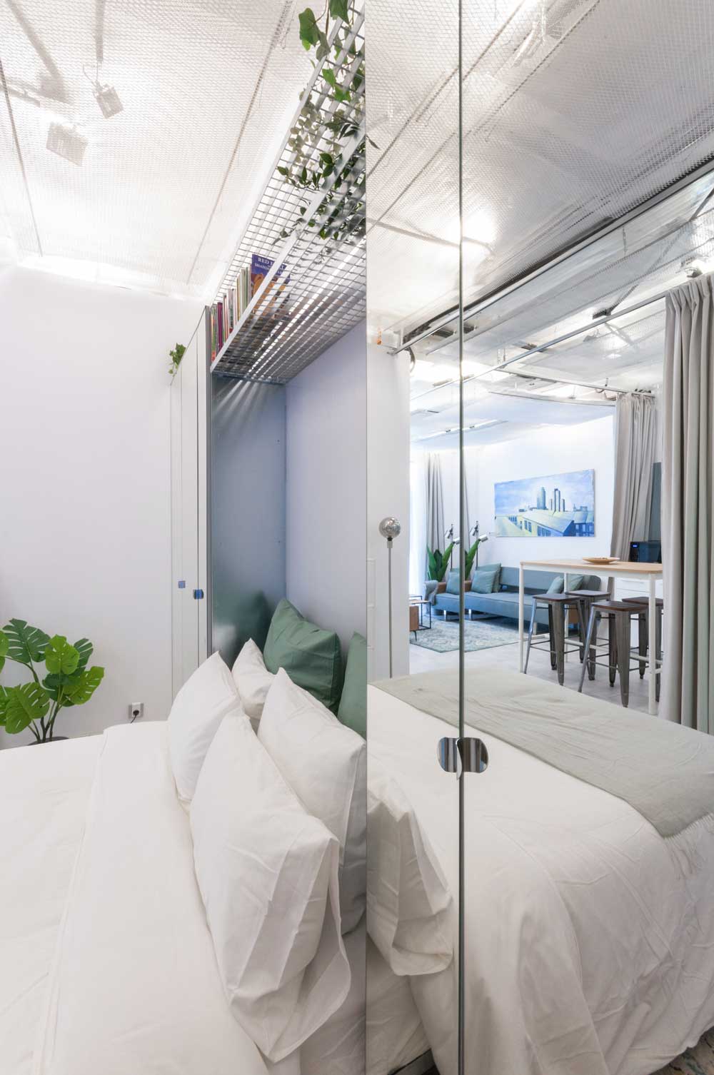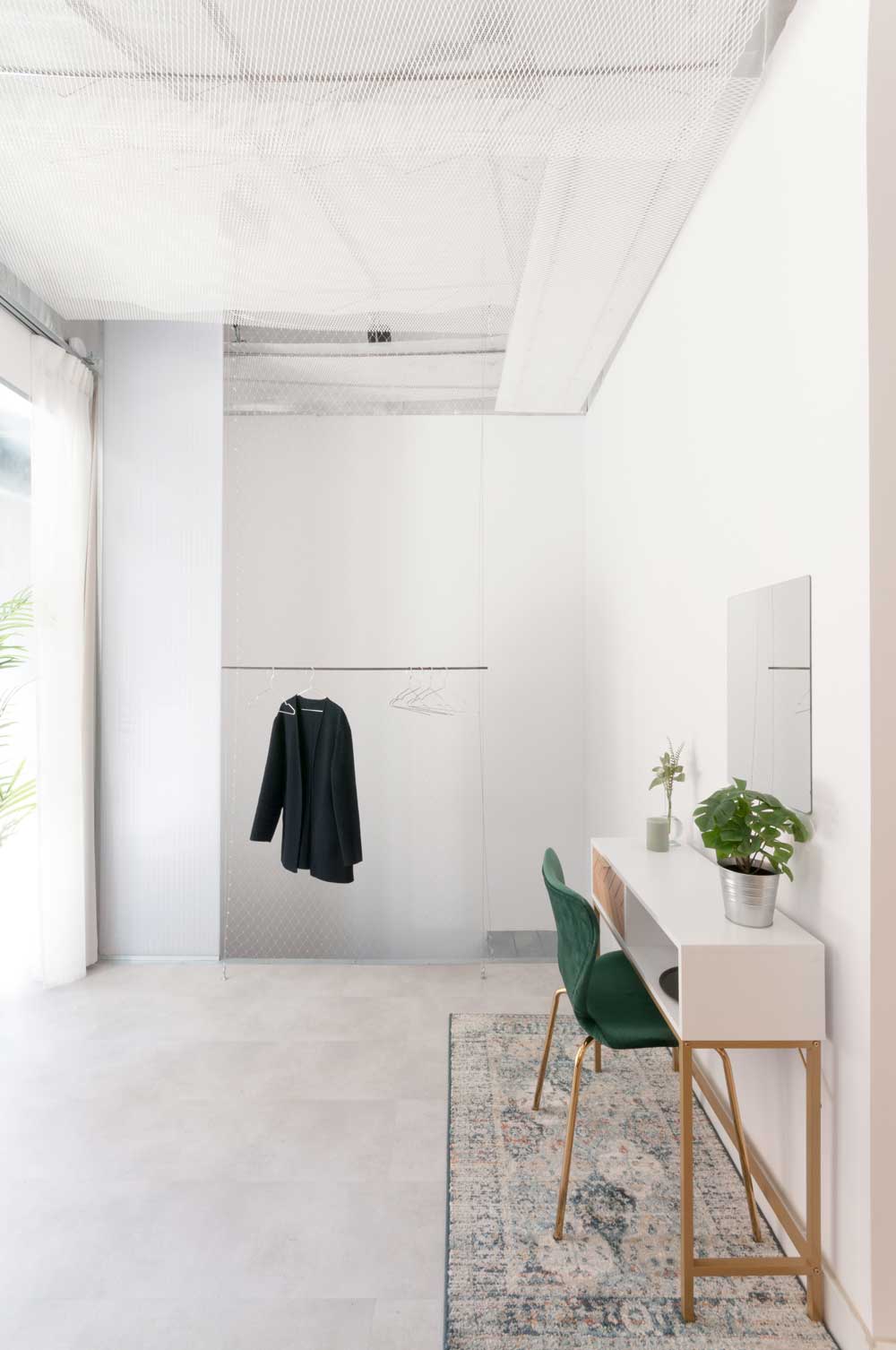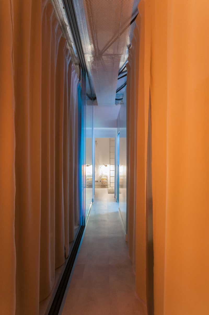 The 50 square meters of Donde Vale represent a challenge for Alvaro Catalan, an author of architectural projects: the desire to create an efficient living space in a limited number of square meters. The use of flexible partitions, such as curtains and panels, makes it possible to maximize the functionality and adaptability of the apartment, without sacrificing the different levels of privacy and the creation of personalized spaces of different sizes.