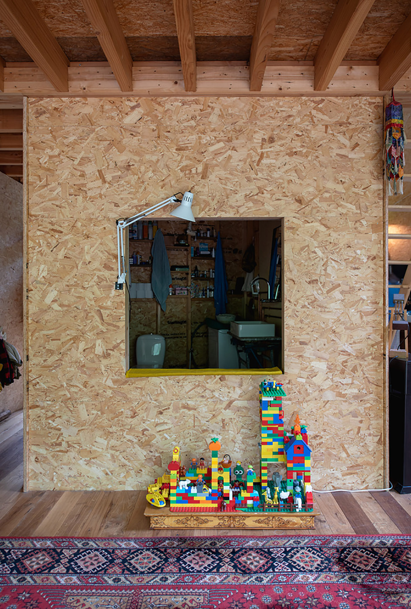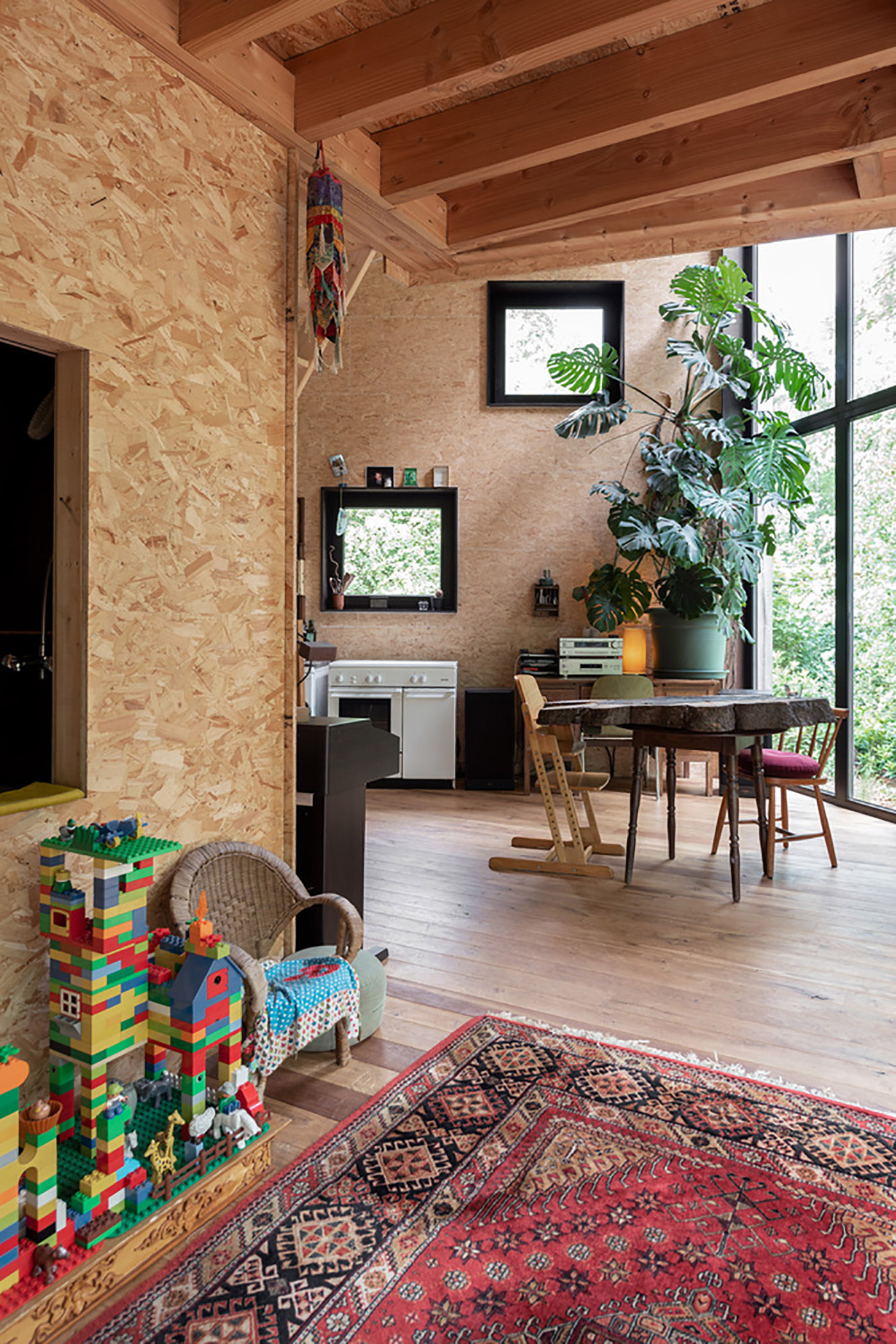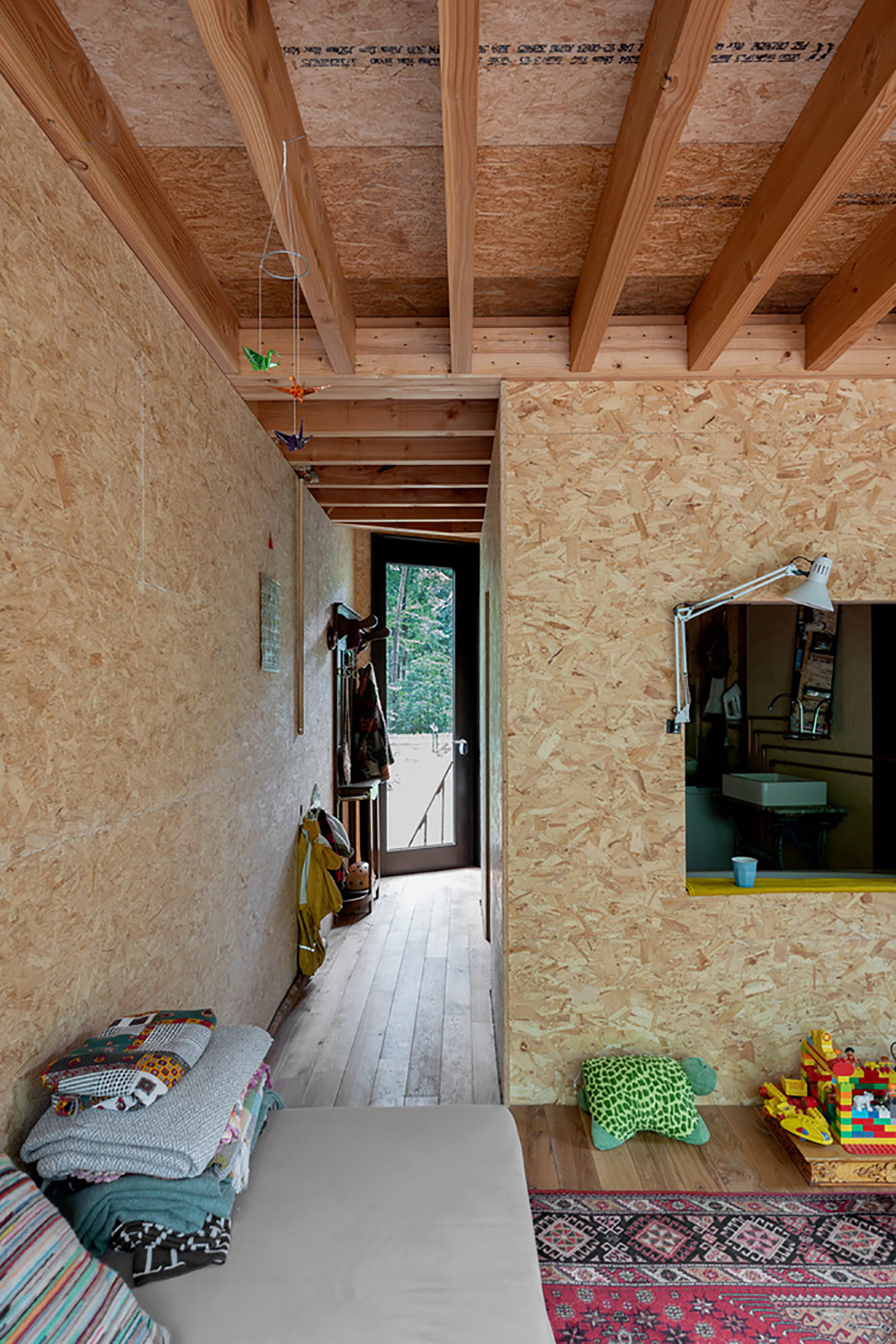 Local wood was the budget-friendly choice: easily renewable wood that would further reduce the client's costs. Even the windows are wood, and the roof is made of fiberboard topped with fiber cement sheets