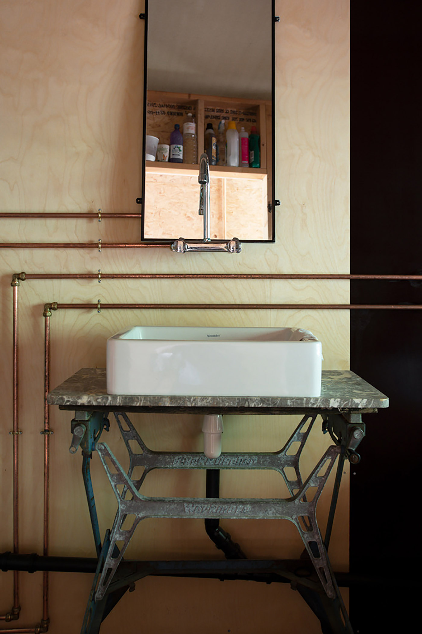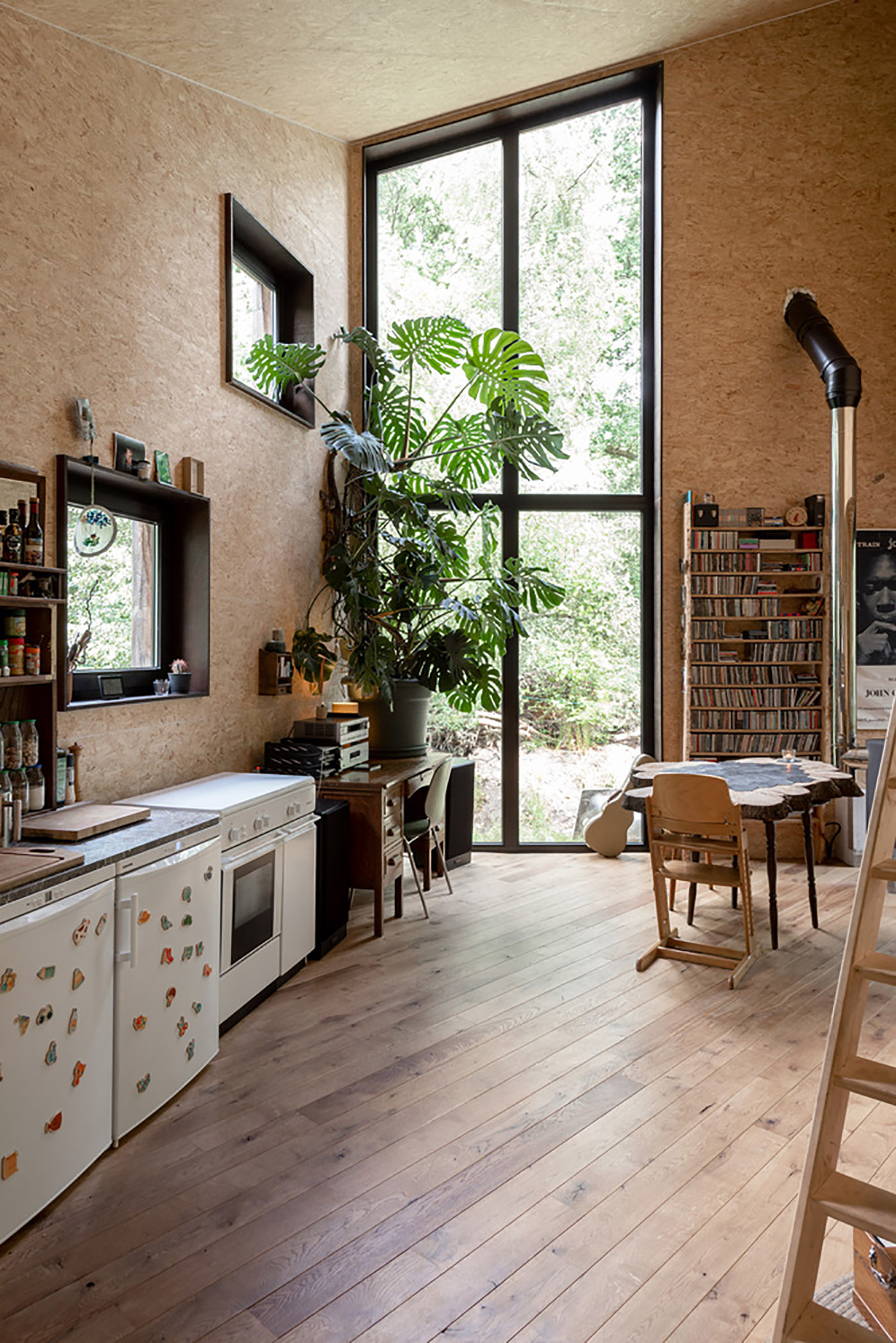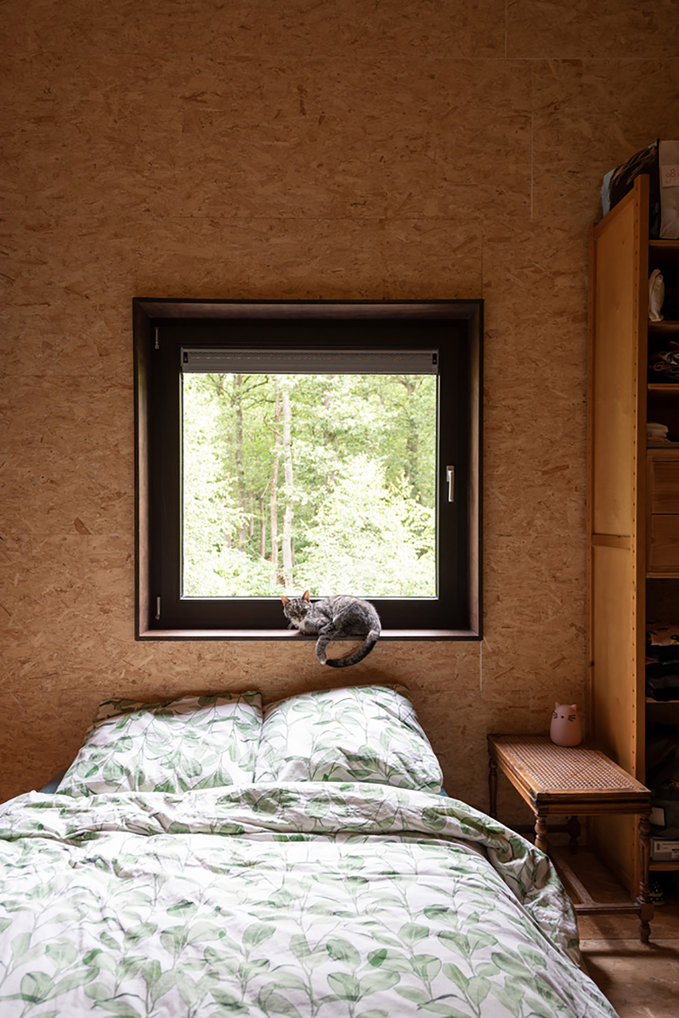 Local wood was the budget-friendly choice: easily renewable wood that would further reduce the client's costs. Even the windows are wood, and the roof is made of fiberboard topped with fiber cement sheets