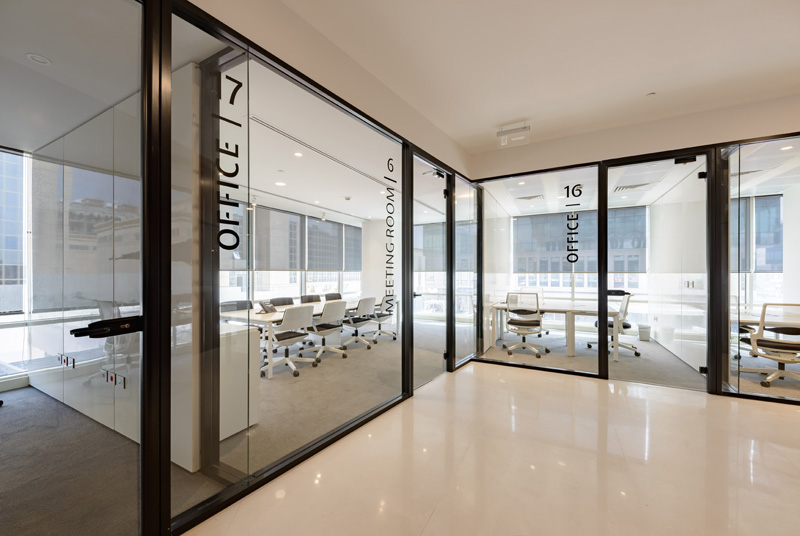 The three volumes include the spaces that need the most space, and also contain auxiliary spaces, while the closed offices are located along the facades, using glass partitions that allow the light to circulate