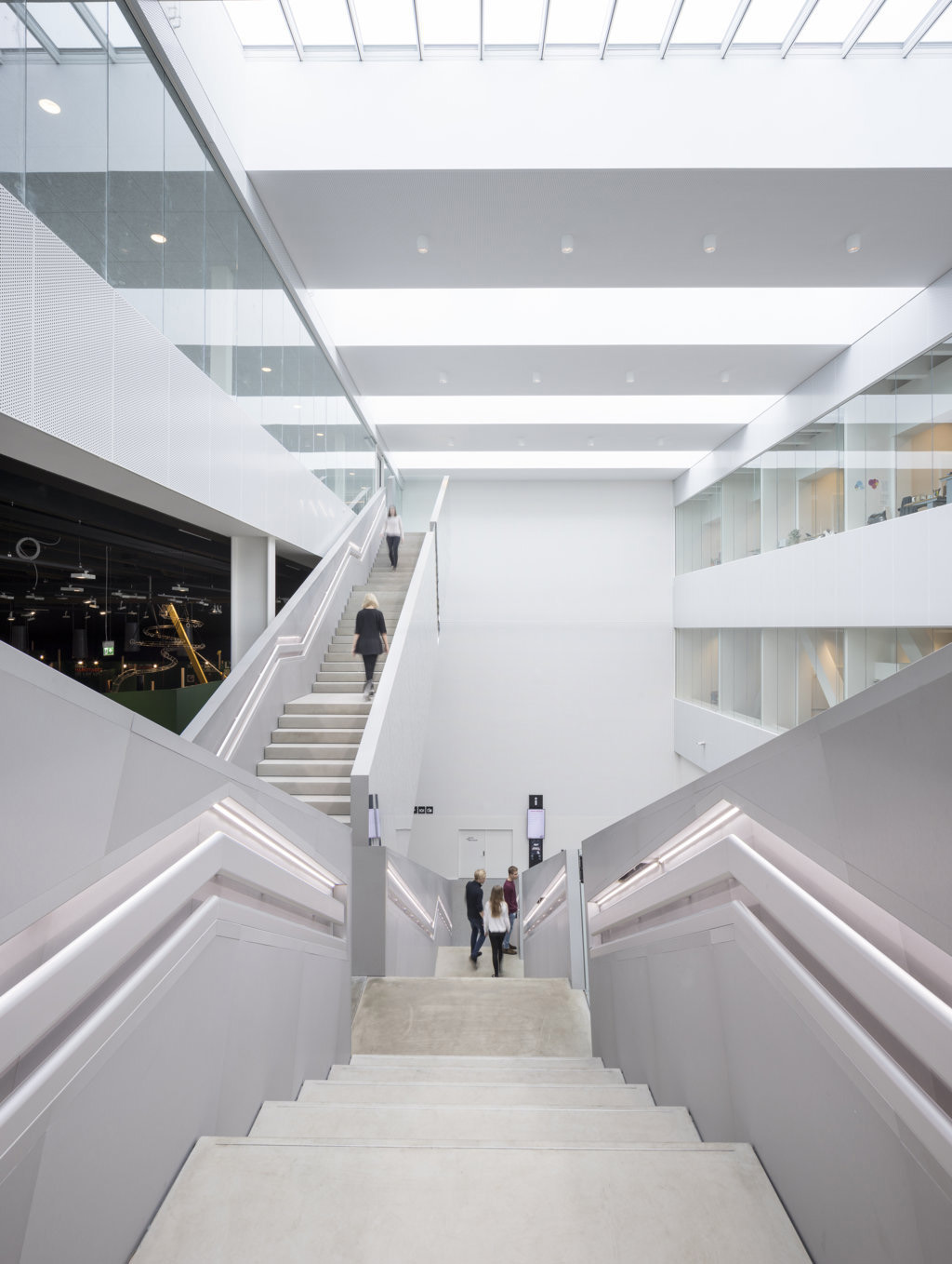 As soon as you enter the building, the visitor is struck by the Helix staircase, an architectural icon made of 160 tons of copper-plated steel that unfolds in a long one hundred meter spiral that traverses the building over four floors. It ensures a good internal flow and creates coherence between the floors, giving concrete form to the scientific focus of the building: its shape is in fact inspired by the structure of the DNA
