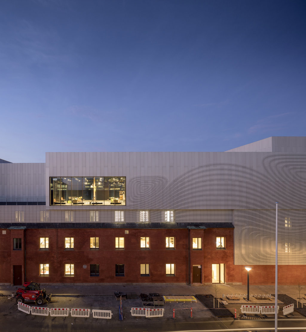 The different functions of the building are made visible to the city in the form of stacked boxes that open to the surrounding environment, with large windows creating a visual link with the scientific universe inside. The "boxes" are clad with a light façade of perforated aluminium panels, creating a contrast with the base, where the existing masonry is preserved and emphasizing the encounter between old and new, between past and future and between natural sciences and engineering. At the same time, the drilling creates a structure that illustrates how the flow of air and liquids vary when they encounter resistance