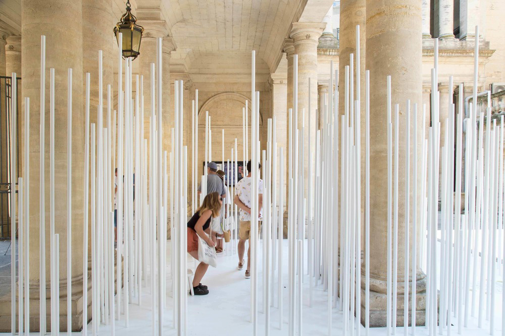 The pavilion of the Festival des Architectures Vives 2017 experiments with the spatial connection created by a simple architectural element, the White Column.