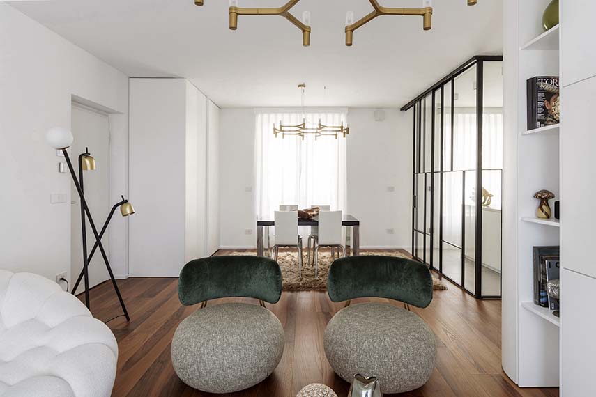 In the project curated by Maurizio Pol, founder of kkarchitecture, the renovation of a raw apartment becomes an exercise in precision and creativity. The goal was to transform technical constraints – systems, fixtures, heating already defined – into design opportunities, returning multifunctional and coherent spaces capable of evolving over time. The house welcomes a family with a teenage daughter, combining conviviality, intimacy, and personalization.