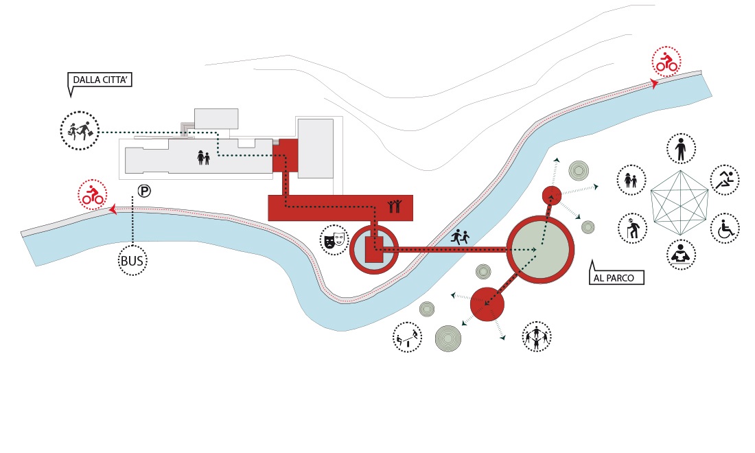 The innovation of the Architects' proposal is characterized by the attempt to create a progressive and stimulating path that accompanies the student from the city to nature. The proposed participation path tends to develop the use of the future Campus as a new civic and environmental centre