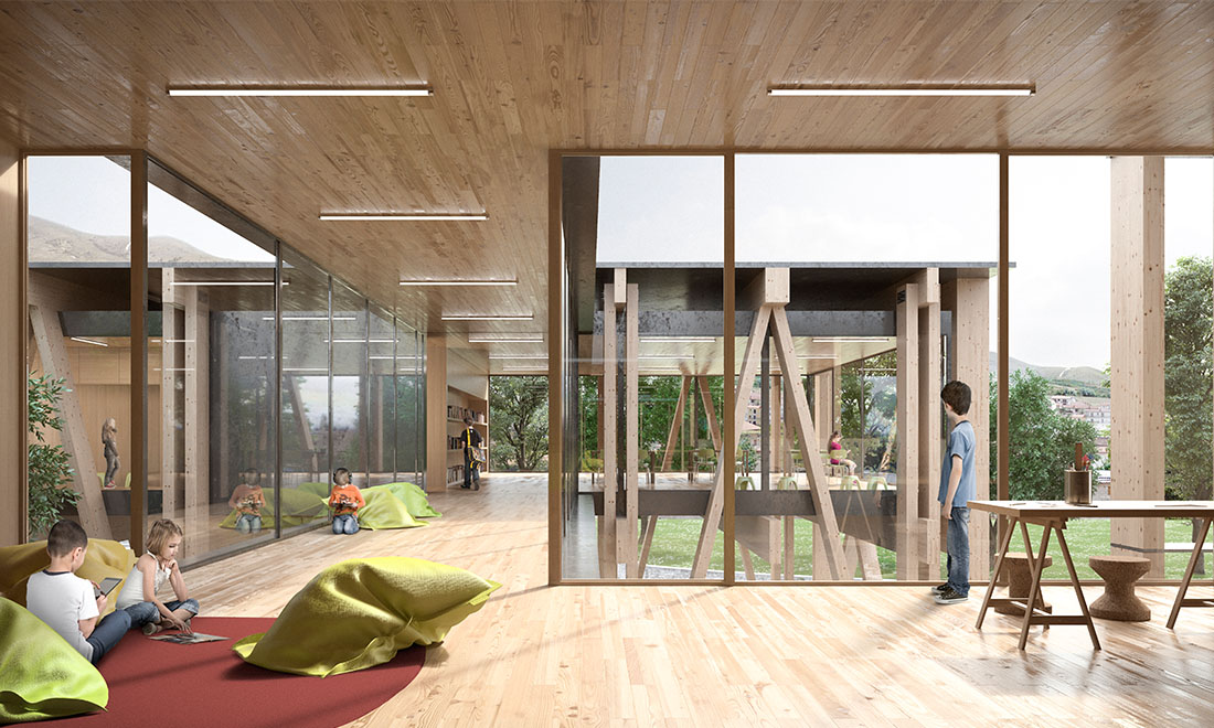 The project proposed by the team of LCA Architects for the redevelopment and expansion of the school in Pescina, in the province of L'Aquila, Abruzzo, was to develop a genuine intergenerational civic pole which would be appealing to the community