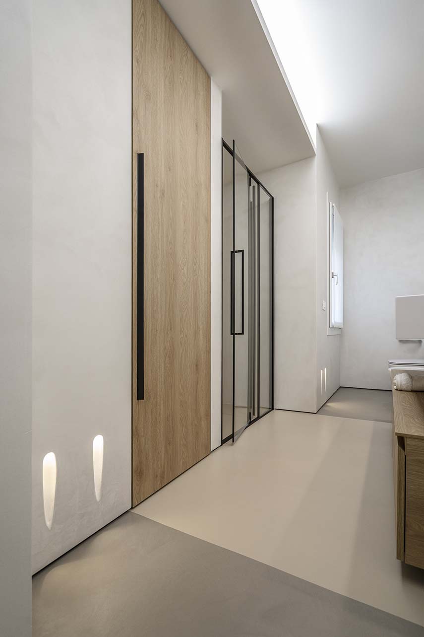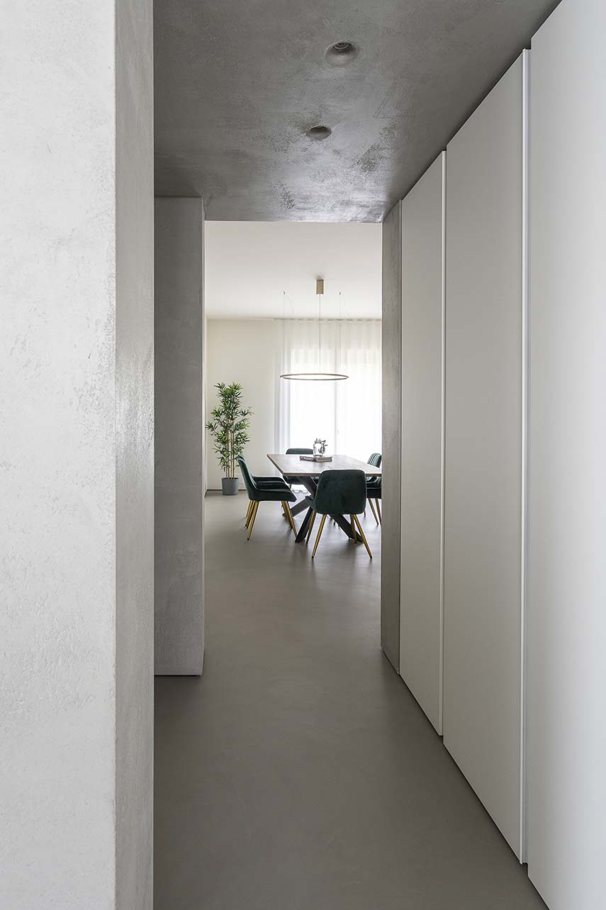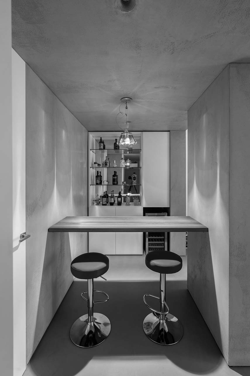 Designing means "presenting the future of their living spaces to the customer" in the words of the architects from L2 studio, specialized in home renovation. In the project of the CF apartment, this is exactly what happens: bringing spaces to life even before living in them. The new distribution of the apartment revolves around the bar corner, a structure sculpted in concrete that becomes the focal point of the environment. Not only an aesthetic gem, but also highly functional: equipped with a wine cellar and equipment for preparing cocktails, the bar corner is ideal for socializing and relaxing, welcoming guests into their own living comfort.