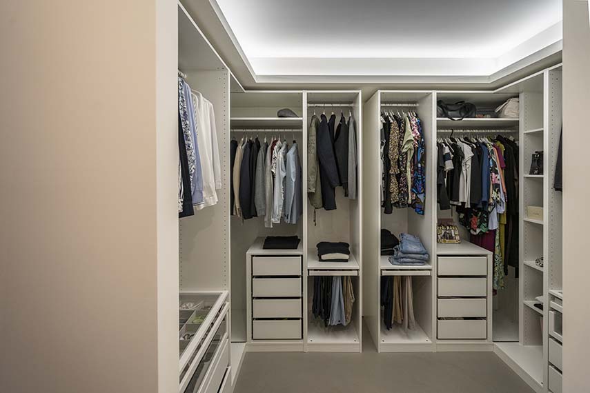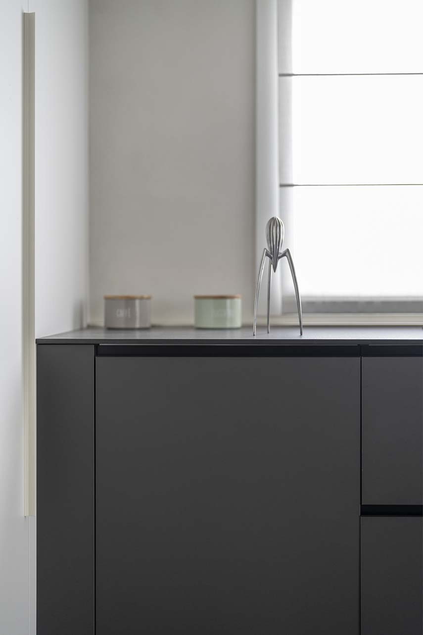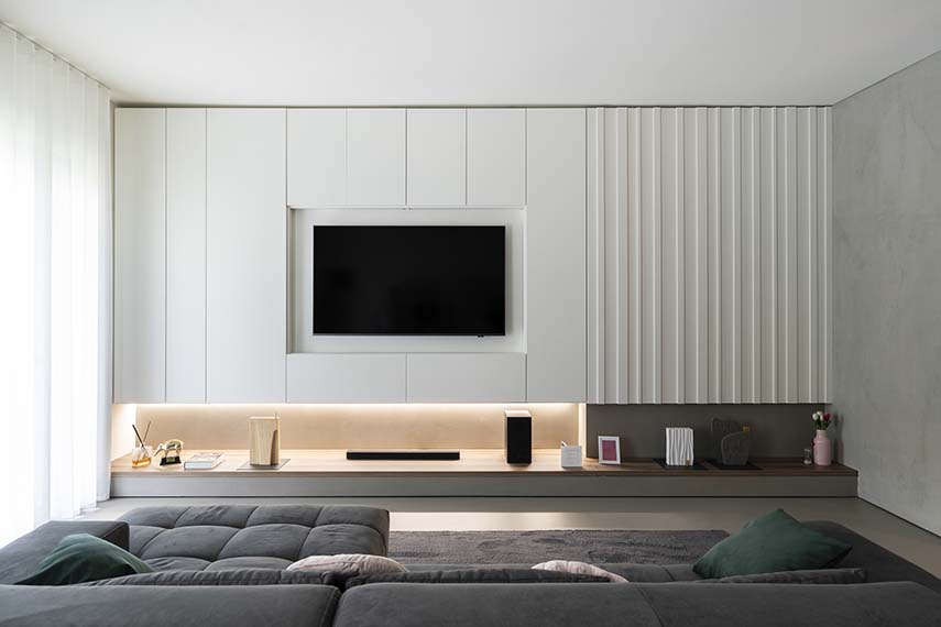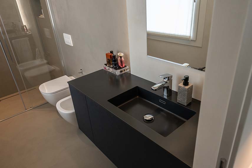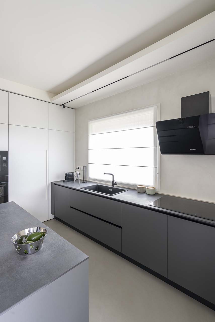 Designing means "presenting the future of their living spaces to the customer" in the words of the architects from L2 studio, specialized in home renovation. In the project of the CF apartment, this is exactly what happens: bringing spaces to life even before living in them. The new distribution of the apartment revolves around the bar corner, a structure sculpted in concrete that becomes the focal point of the environment. Not only an aesthetic gem, but also highly functional: equipped with a wine cellar and equipment for preparing cocktails, the bar corner is ideal for socializing and relaxing, welcoming guests into their own living comfort.
