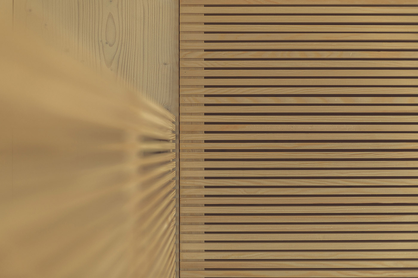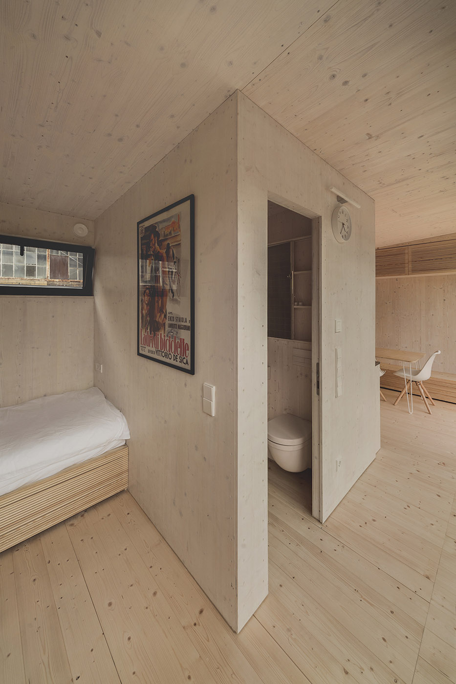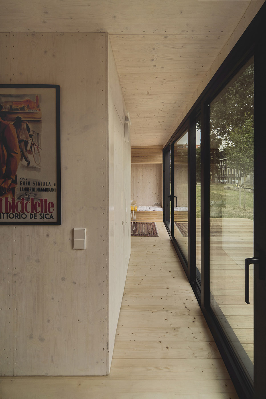 Thanks to the small number of materials used, continuity is created in the interior space. The house is built with natural and ecological materials, such as wood fibre insulation, triple-layer wood panels, boiled linseed oil-based paint