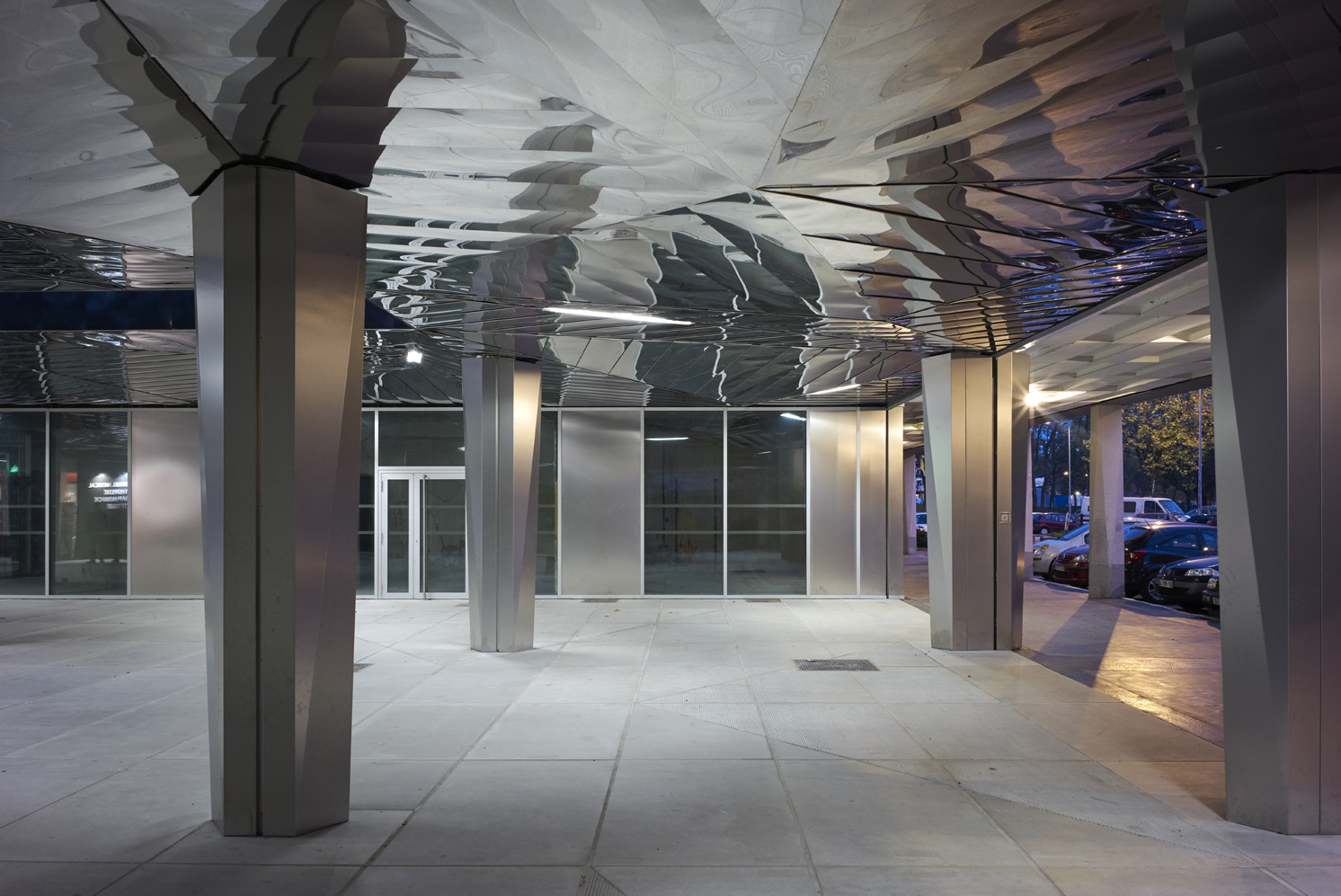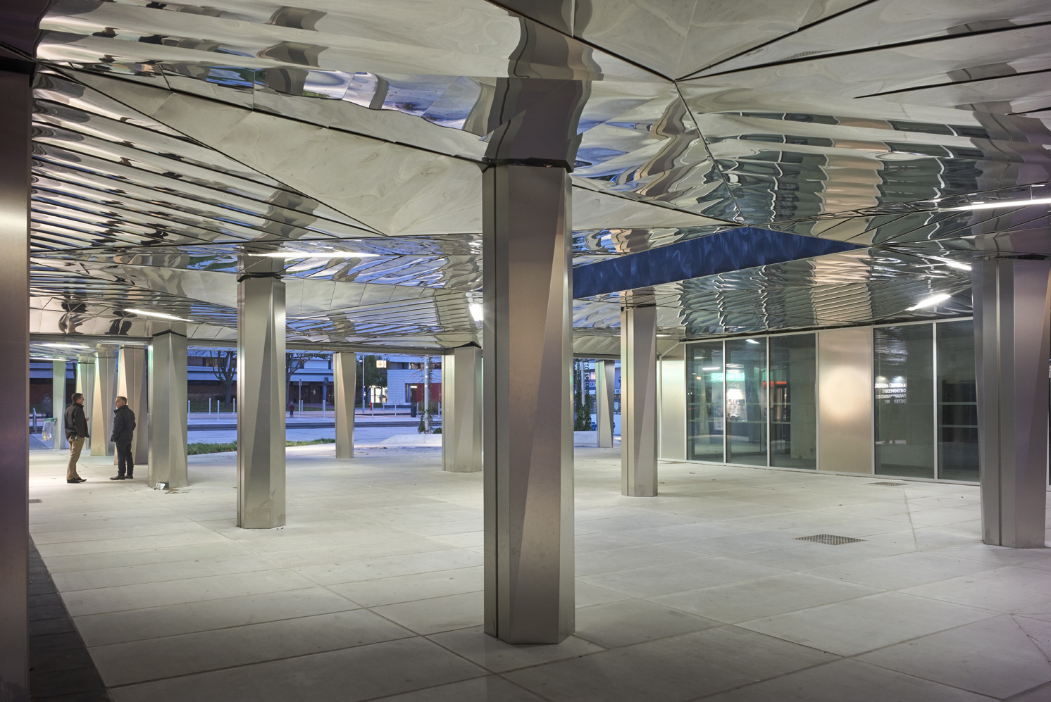 During the night, a series of aluminum trees illuminate the place, increasing the graphical quality of the project