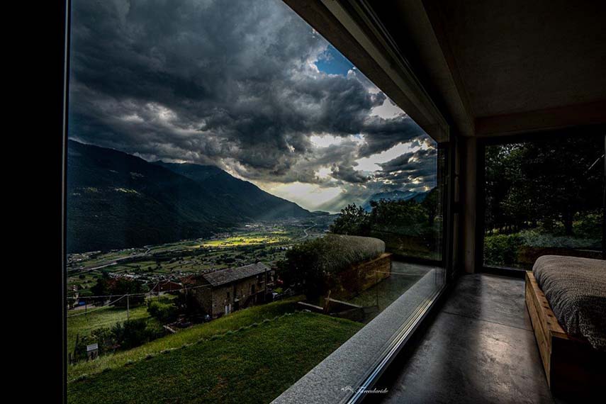 Inspired by the place where it stands, its light, the changing seasons, simple forms combined with contemporaneity, Villa TR is one of the many residential architecture projects by Studio Bioprogettazionetarca Tarca. The house is oriented towards the south and is designed with large transparent surfaces to allow a direct relationship between the interior and exterior, culminating in the fusion between architecture and nature of the green roof