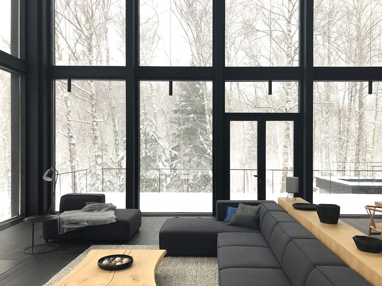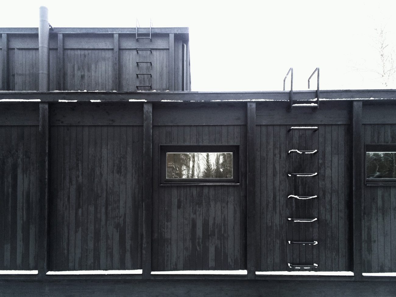 Il colore nero per esterni e interni è stato scelto come colore astratto ed in contrasto con il bianco del paesaggio spesso innevato