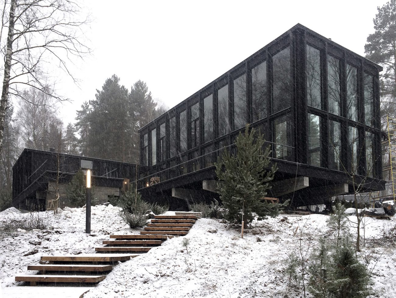 Architects Alexander Ryabskiy and Ksenia Kharitonova's FAS(t) studio in Russia's Moscow Region have designed a building with a wooden structure. The uniform rhythm of the wooden supports characterizes the façade, inspired by the trees of the forest