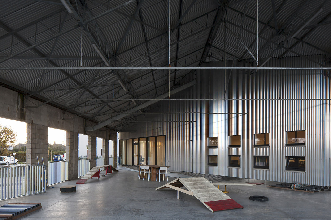 The client commissioned WE-S architecten to build a dog therapy center in a warehouse in Merelbeke, a Belgian municipality of about 24,000 inhabitants in the Flemish province of East Flanders