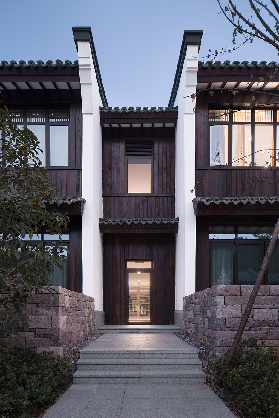 The structure of the hotel consists of many courtyards in order to separate the various functional areas and give more privacy to the rooms which are located south-west of the main part of the hotel. White walls, black tiles, large eaves and slate floors are the main decorative elements.