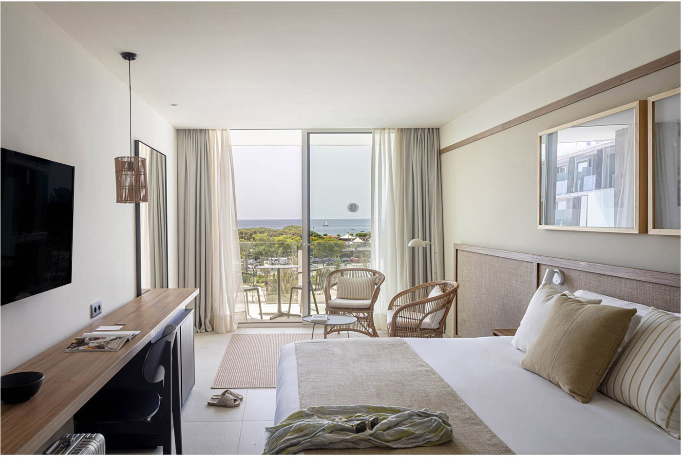 An invisible thread connects each of these scenographies: a path along the coast that unites all the experiences offered by the hotel through the common element of the landscape. Thus, along this path we will find the beach, with the encounter between the sea and the sand; a meadow of Posidonia at the bottom of the sea, full of fishermen's nets; a market where the colors and flavors of fresh produce can be enjoyed; pine forests, sand dunes, and agaves...