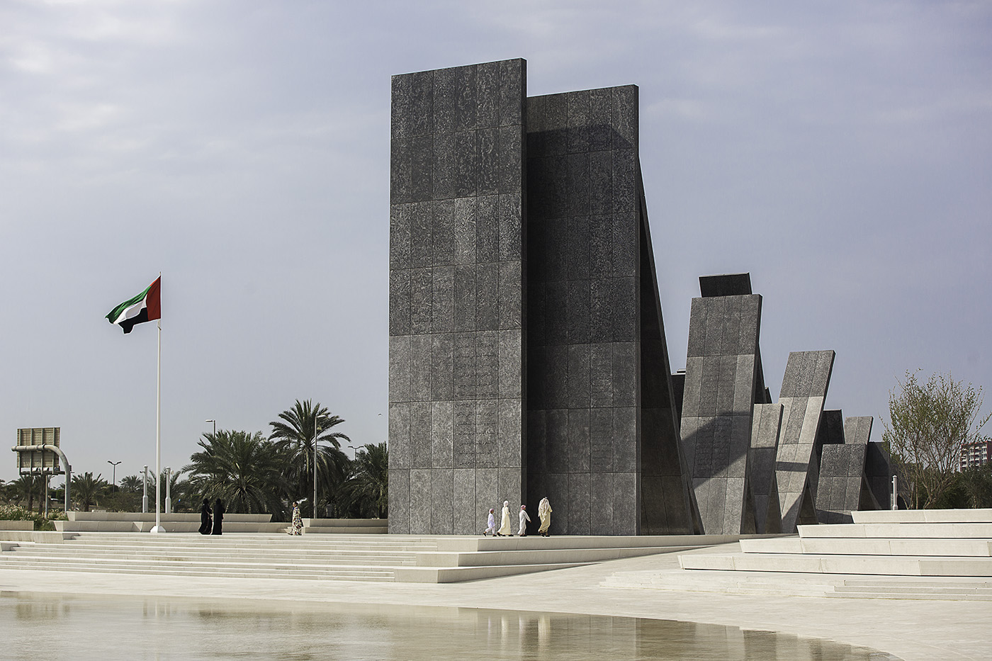 An Idris Khan British work of art forms the Memorial in the heart of Wahat Al Karama Park. Symbolically located between the Great Mosque of Sheikh Zayed and the UAE Armed Forces Headquarters, Wahat Al Karama, which means "oasis of dignity", covers an area of 46,000 square meters.