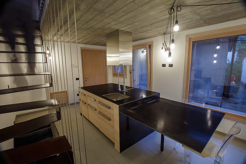 The architects at BEARprogetti design one floor for each function, with 20 square meters dedicated to fulfilling basic needs in an urban, minimalist style that is both captivating and welcoming. Eating, sleeping, and socializing: the three floors of JC House are arranged according to the appropriate amount of natural light for each activity