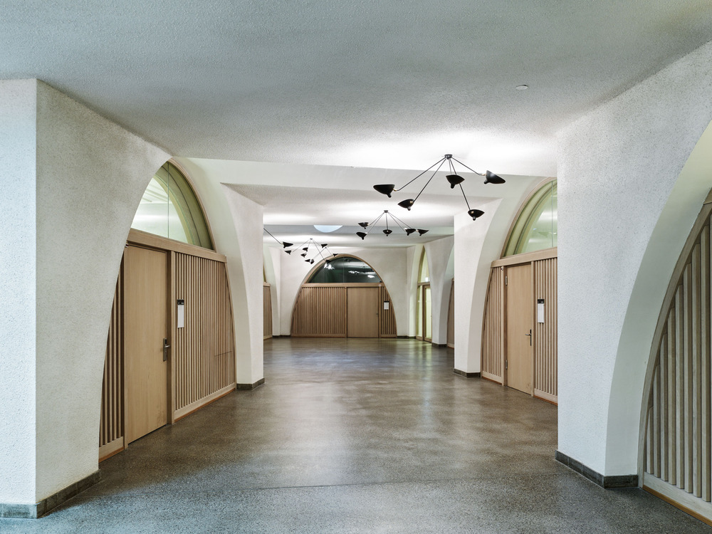 Believing in " architecture trouvée," the architecture and design firm Buol&Zünd creates the new Jazz Campus on the footprint of the pre-existing building. Its internal circulation is organized around a central courtyard that leads to various paths and multiple chance encounters or useful shortcuts in such a complex building. The intention was to create a path within the building that starts in the rehearsal rooms where people practice almost privately, continues in the hallways where they meet other people, and culminates in the courtyard where the level of interpersonal relationship is at its highest