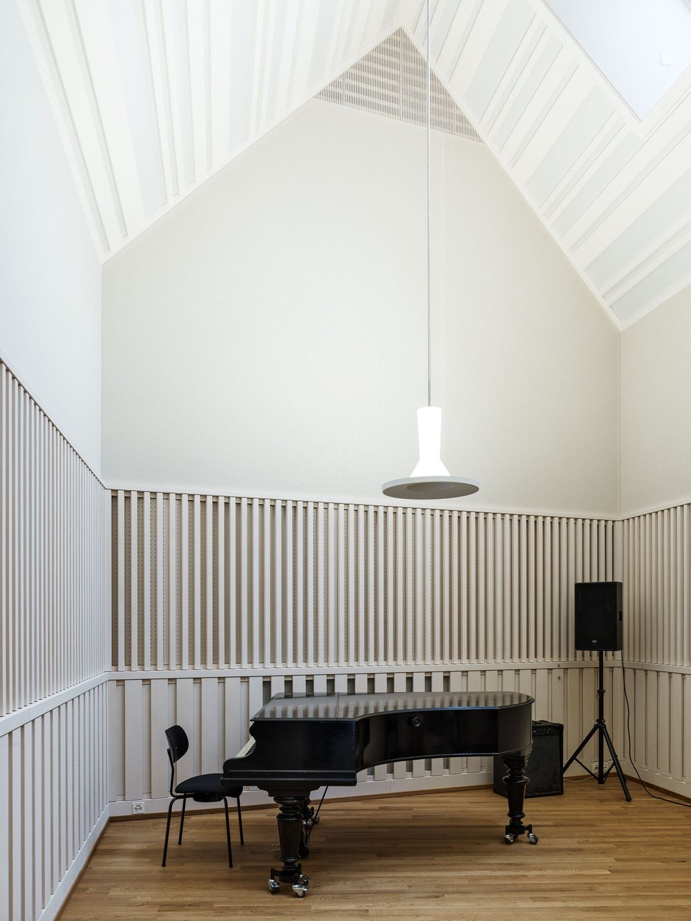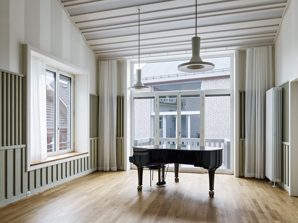 A survey of musicians revealed to the architects that there is no perfect rehearsal room for everyone. Some prefer to play in churches, others like to practice in garages, and still others in their living rooms. The one common point was the need for natural light and a comfortable, intimate atmosphere. That is why the Jazz Campus is designed, instead of standard rehearsal rooms, with rooms of different sizes and acoustic qualities to give musicians freedom of choice