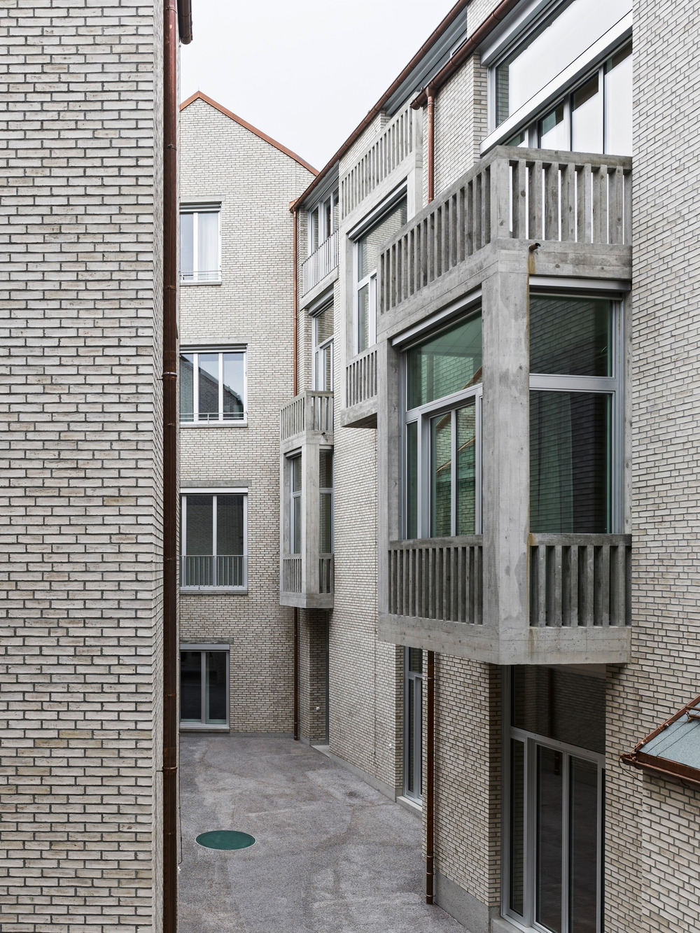 Acoustic requirements shape the building as it was necessary to build almost a second structure with meter-thick walls inside the main building. The interpretation of the courtyard as an urban interior gives the project a strong quality. Indoor and outdoor spaces are mixed connecting the Jazz Campus and the city. Buol&Zünd's building was the winner of the 2016 American Architecture Prize, in the "Educational Buildings" Bronze category