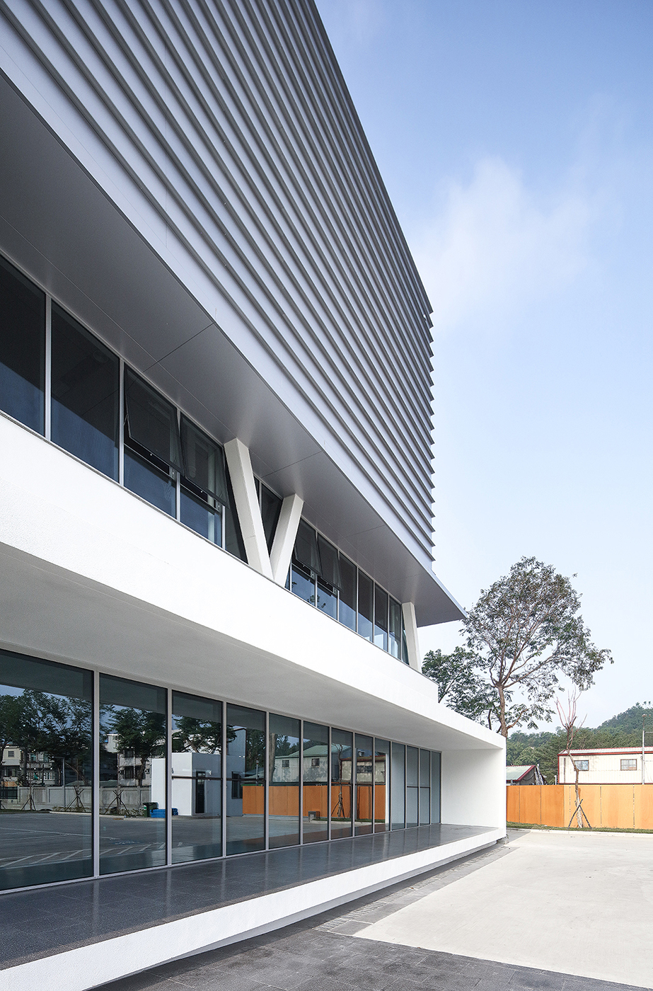 MAYU Architects has expanded a school centre in Taiwan where the new sports facilities, gym and swimming pool have been designed as an integral part of the previous structure, working on various levels of elevation in order to aesthetically renovate the existing building