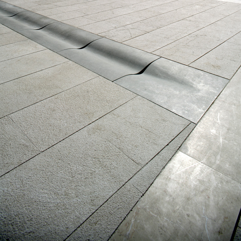 Two elements stand out particularly in the project: the gutter and a bench next to the church