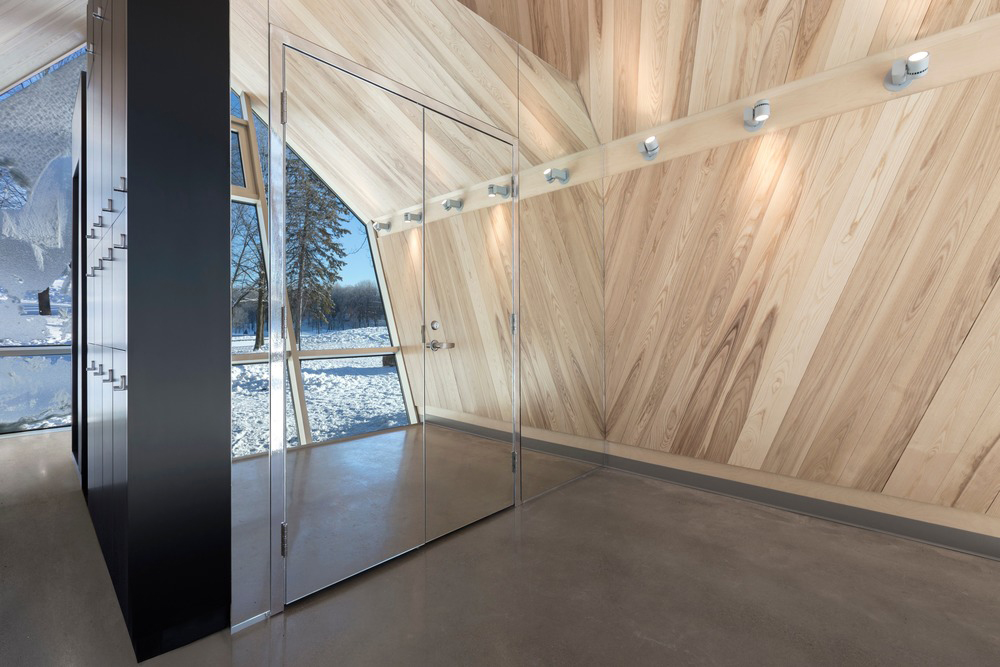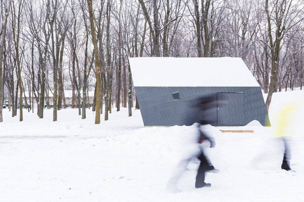 Internally clad and furnished with wood, Atelier Urban Face architectural studio has created 3 stalls in Mount Royal Park, Montreal. Each stall stands at a different angle, as if pushed by the wind