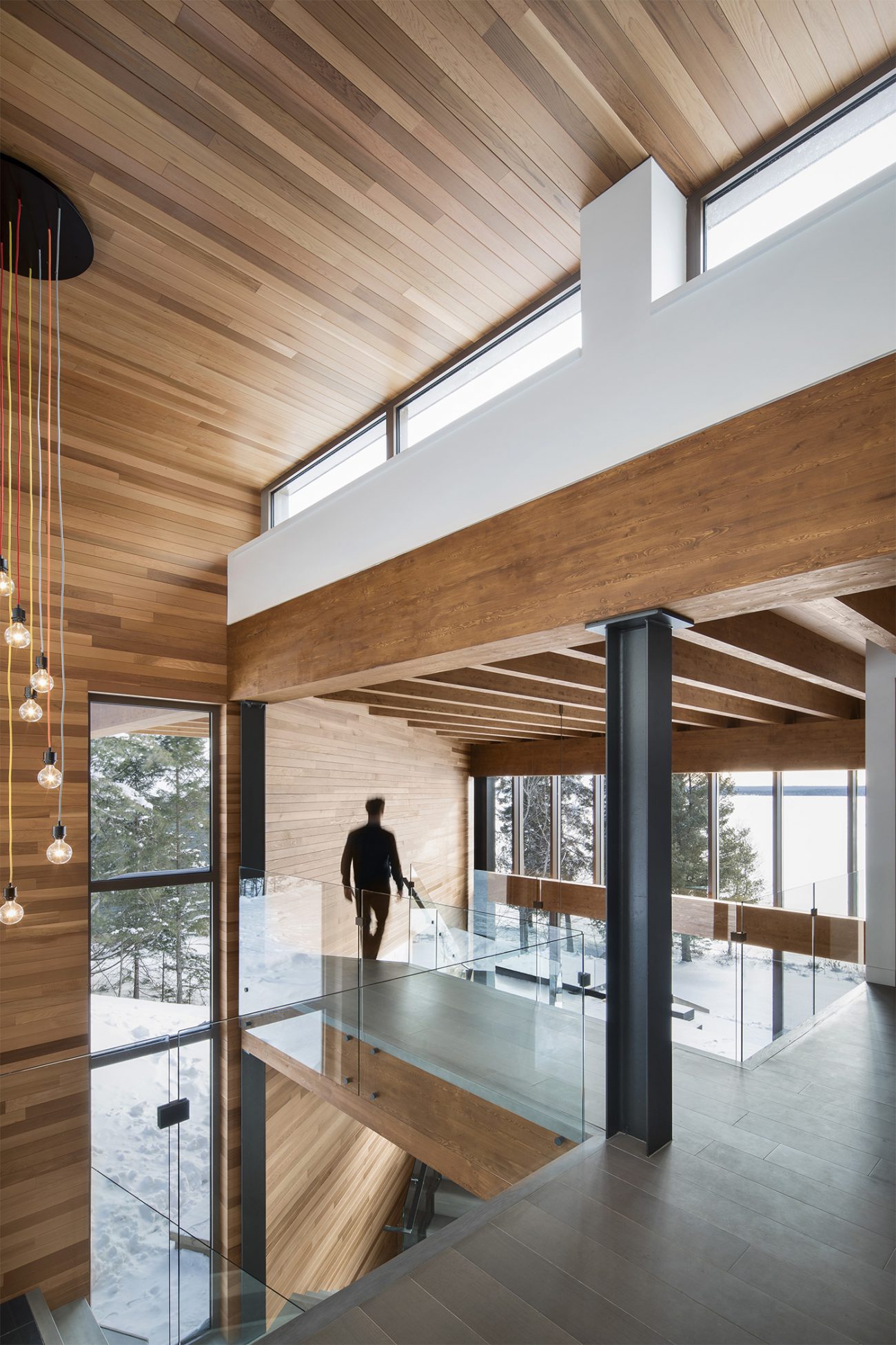 A holiday home on Lake St-François, Quebec, has been completely rebuilt in wood to a design by Bourgeois / Lechasseur Architects, which has designed an extension on the premises, maintaining the opening towards the lake and preserving the surrounding landscape