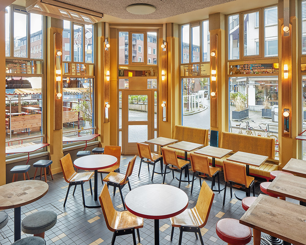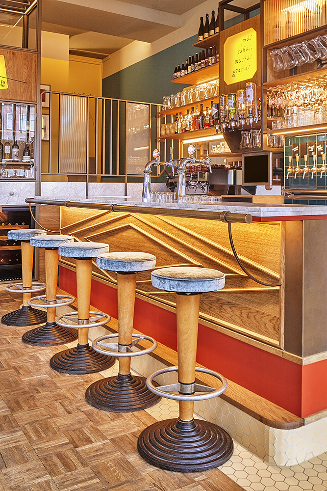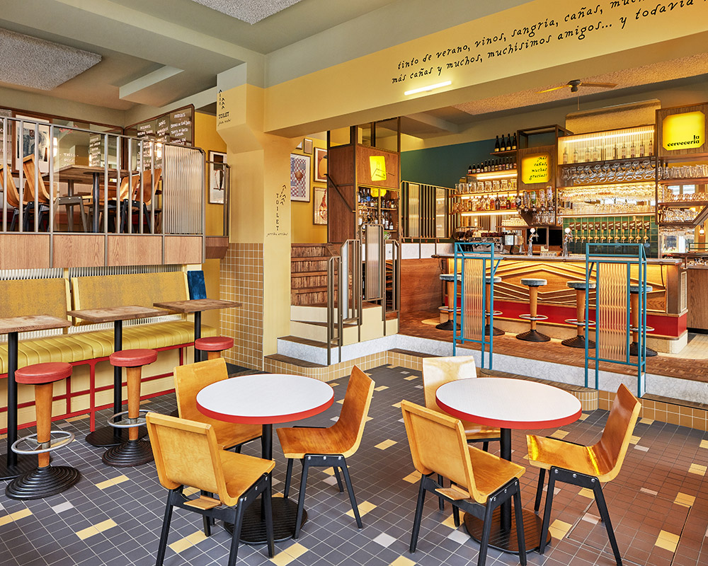 Located in the green eastern neighborhood of Amsterdam, La Cervecería is a bar designed by Studio Modijefsky, known for its innovative architecture projects and interior design. This space celebrates the authentic atmosphere of Spanish cervecerías, welcoming guests in an informal and cozy environment. With its warm and vibrant colors, the bar invites you to spend moments of conviviality, enjoying pinchos and tapas with friends or relaxing after a long day. La Cervecería combines Mediterranean simplicity with the sophistication of carefully studied design, offering a unique experience.