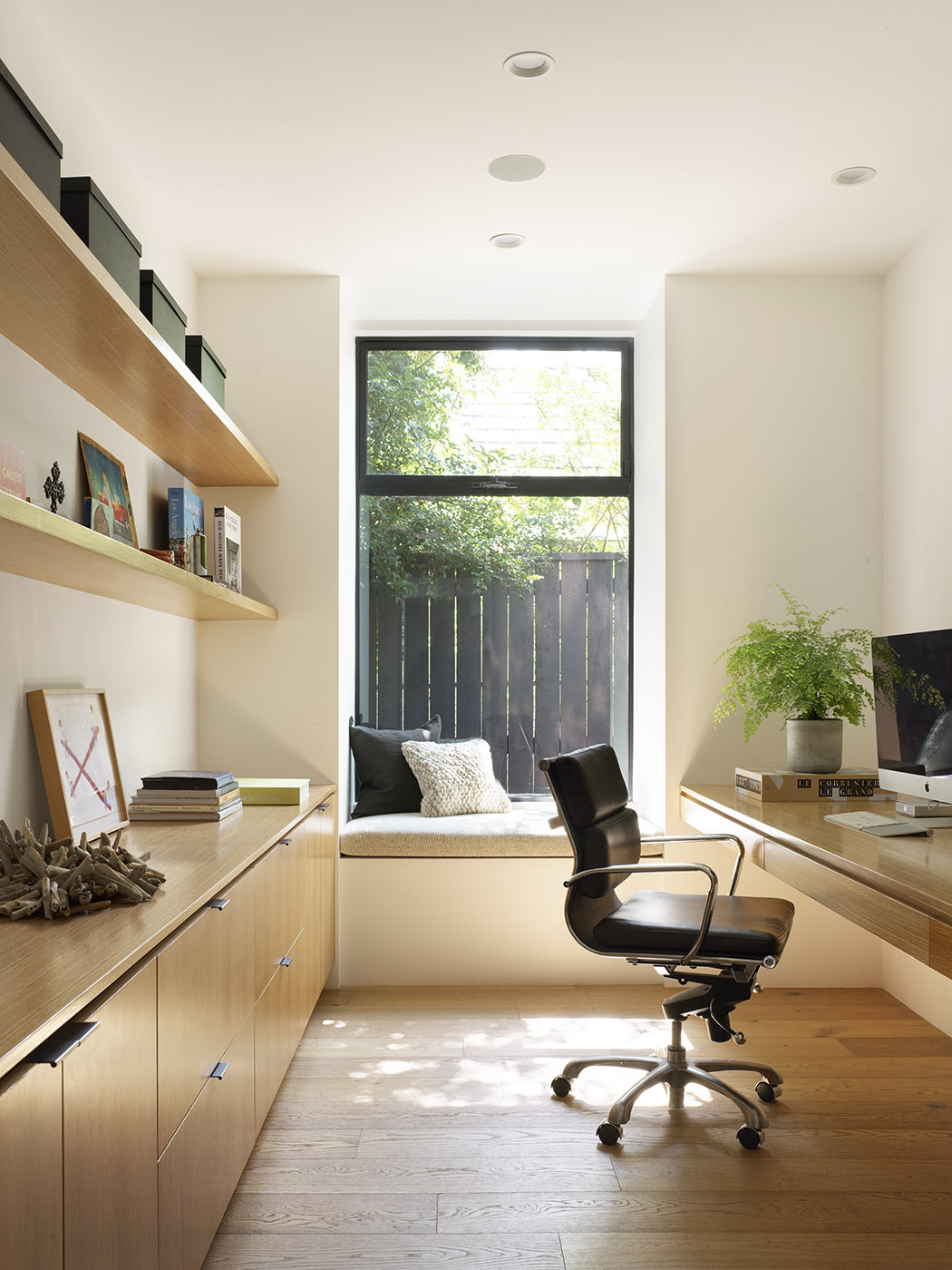 The designers wanted to handle the exterior the same way they handle the interior. The surrounding trees and hills are considered to be the wrapping of the building, and the exterior walls of the house are reconceived as a series of partitions. Instead of externalizing only the interior spaces, the exterior spaces are also internalized. Large windows, skylights, and inlaid doors infuse the house with natural light, reflecting off wood floors and marble countertops