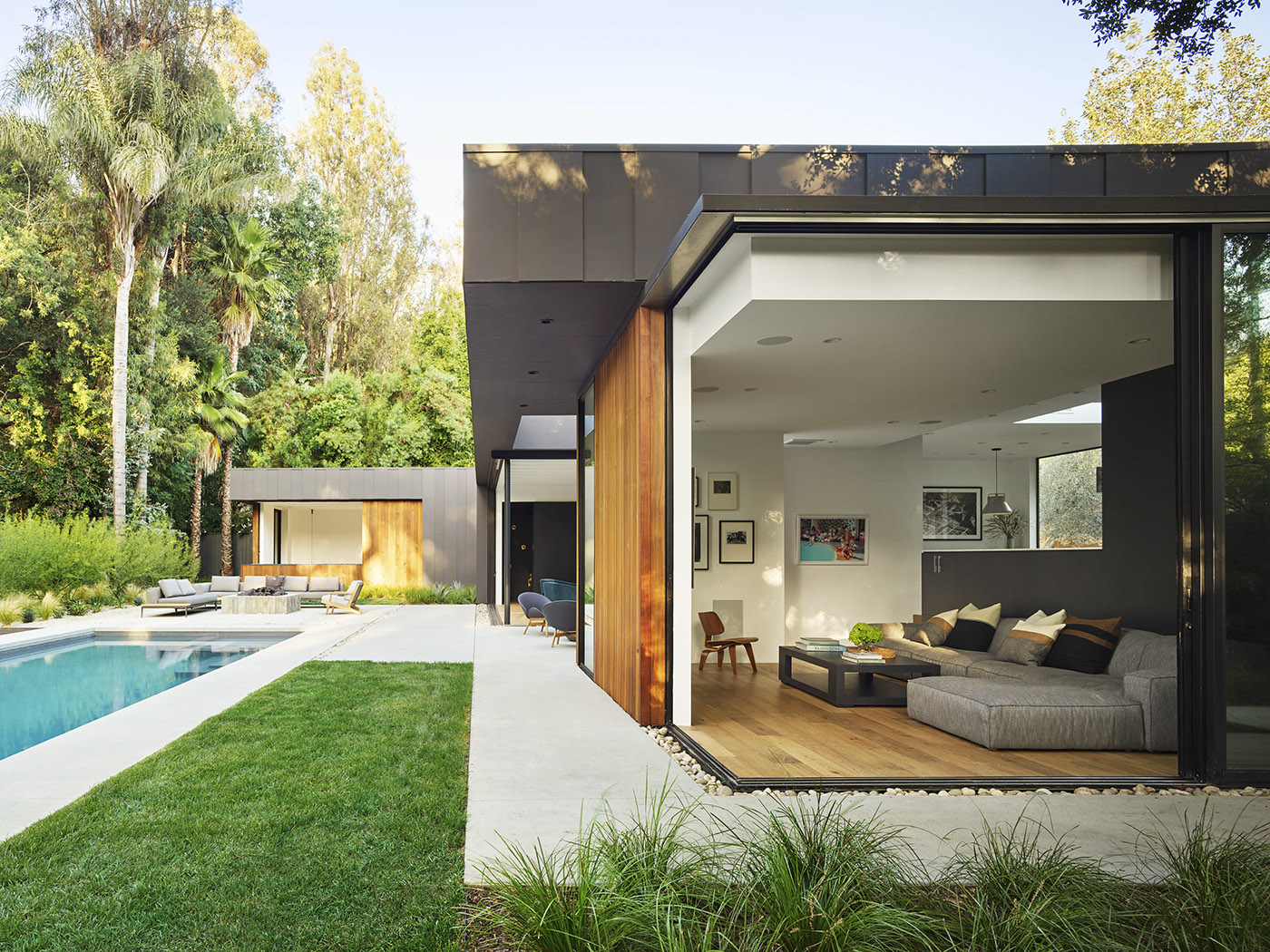 Composed of three pavilions connected by a series of glass corridors, this one-story residence becomes a residential oasis in the heart of Los Angeles. A villa integrated into the surrounding nature where the outdoor space is designed with the same attention as the interiors becoming one with the house