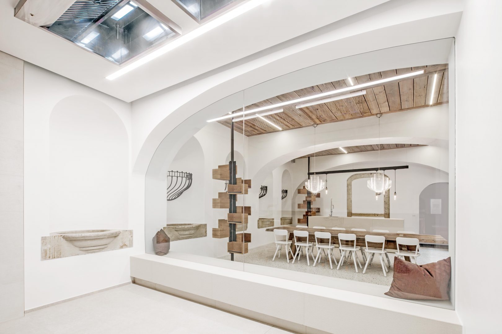 The central idea behind this interior design concept is not to combat natural ageing processes, but to use them to increase quality. The original ageing process is then transformed into a refining process, often associated with flavoured cheeses or raw hams