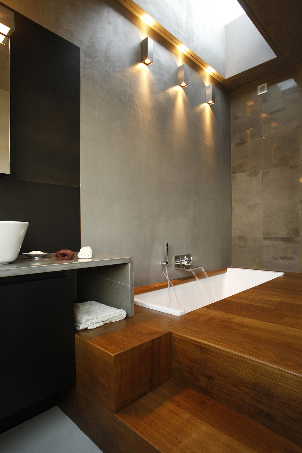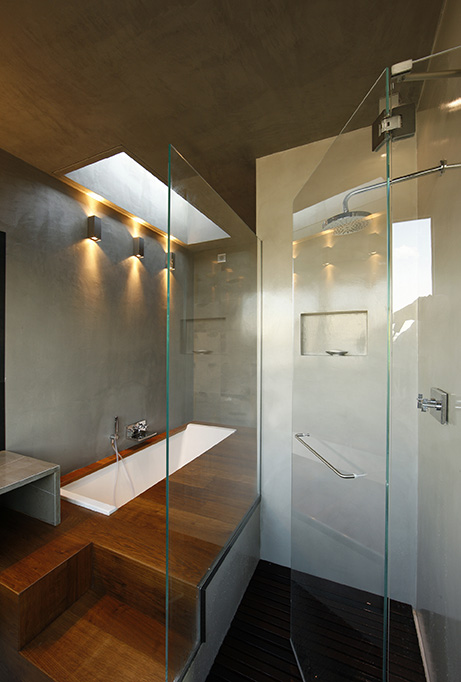 The choice of sanitary ware was made by Ritmonio company, which was chosen by the architect to enhance the contemporary style of the bathroom area even more. An enveloping waterfall jet, which meets the maximum comfort requirements of the owners and ensures a true wellness experience